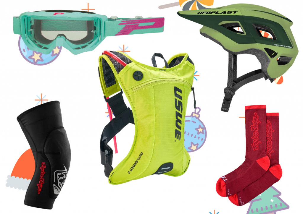 Если бюджет на подарок подходит к 10000 рублей, то здесь можно разгуляться до наколенников Troy Lee Designs или базового шлема UFO Defcon-Three. Тем, кто любит длительные заезды, может быть полезен рюкзак-гидропак USWE Outlander 2, который сейчас стоит всего 7000 рублей. Маска Progrip отлично подходит по посадке, а главное что в RIDE100MX всегда есть запасные линзы для всех очков из ассортимента. Ну и для самых крутых парней на трейлах конечно же есть высокие носки Troy Lee Designs.