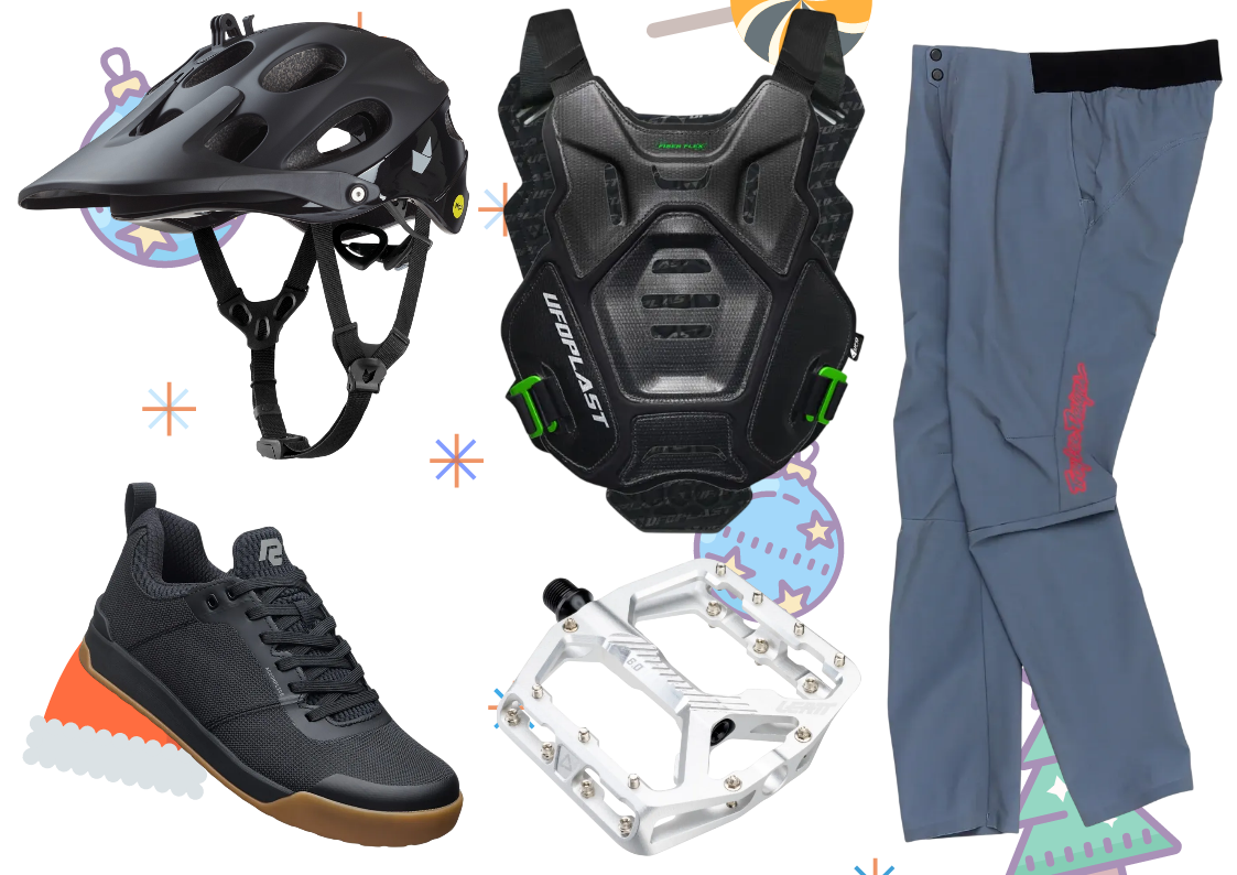 А когда бюджет переваливает за 10000 рублей, можно посмотреть в сторону лёгкого трейлового шлема Catlike Yelmo, который весит всего 360 г в размере М. И это с MIPS-ом и креплением для экшн-камеры. Для любителей лайтовых заездов так же есть лёгкие штаны TLD Skyline Superlyte, лёгкий карбоновый панцирь UFO Fiber Flex, облегчённые тапки Ride Concepts Accomplice с внутренней сеткой, которая классно отводит пот. Ну и для лучшего контроля сцепления нужно стоять в этих кроссовках на новых лёгких, но прочных и огромных педалях Leatt 6.0.