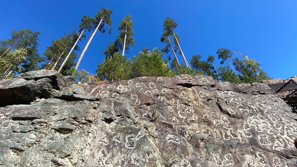 На скале протяжённостью 200 метров и высотой до 10 метров вырезаются 1000 зайцев.