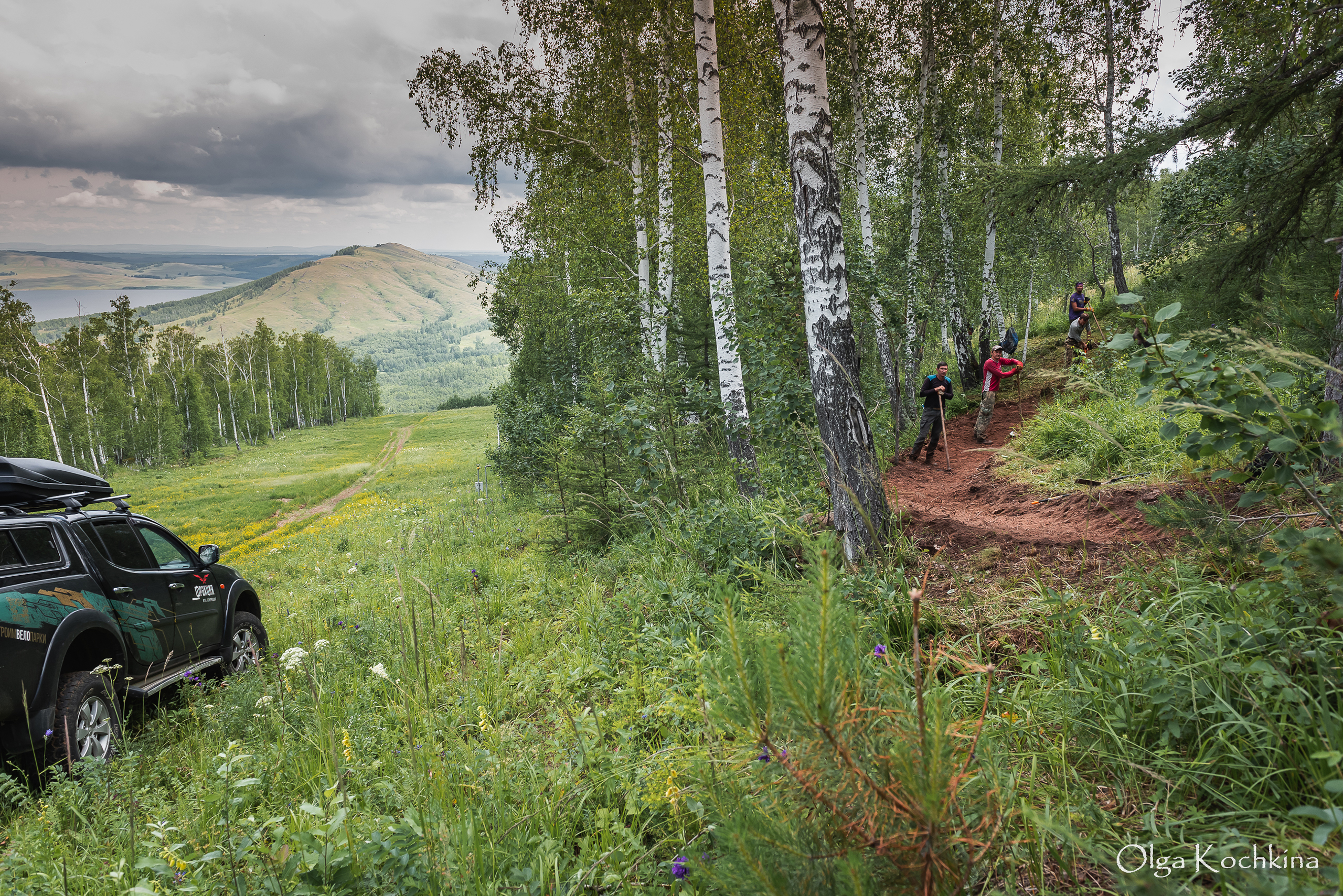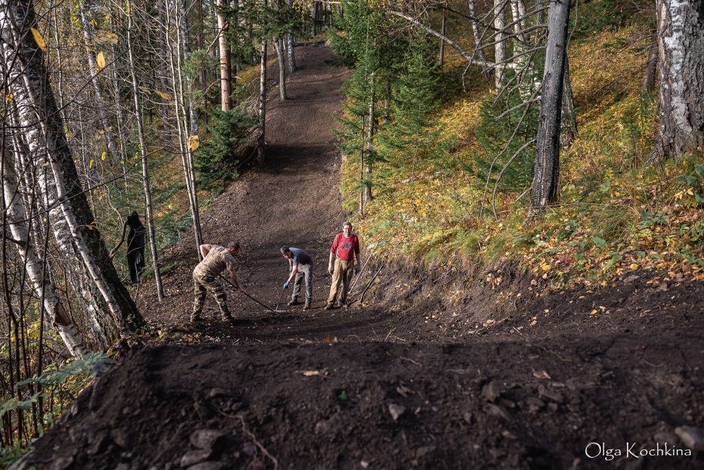 Пост-фестивальная Белка прошла в режиме активного трейлбилдинга в достаточно сложных погодных условиях. За весь август было 8 дней без дождя, в сентябре получше, но тоже всего 12 дней без осадков. Особенно непросто давался размокший чернозём при создании памп-трейла «Кача». После завершения прокладки линии длиной 1,1 км, сделали отсыпку верхнего слоя минеральным грунтом и в пасмурно-дождливый сентябрьский день провели символическое открытие трейла с целью собрать обратную связь от райдеров.
