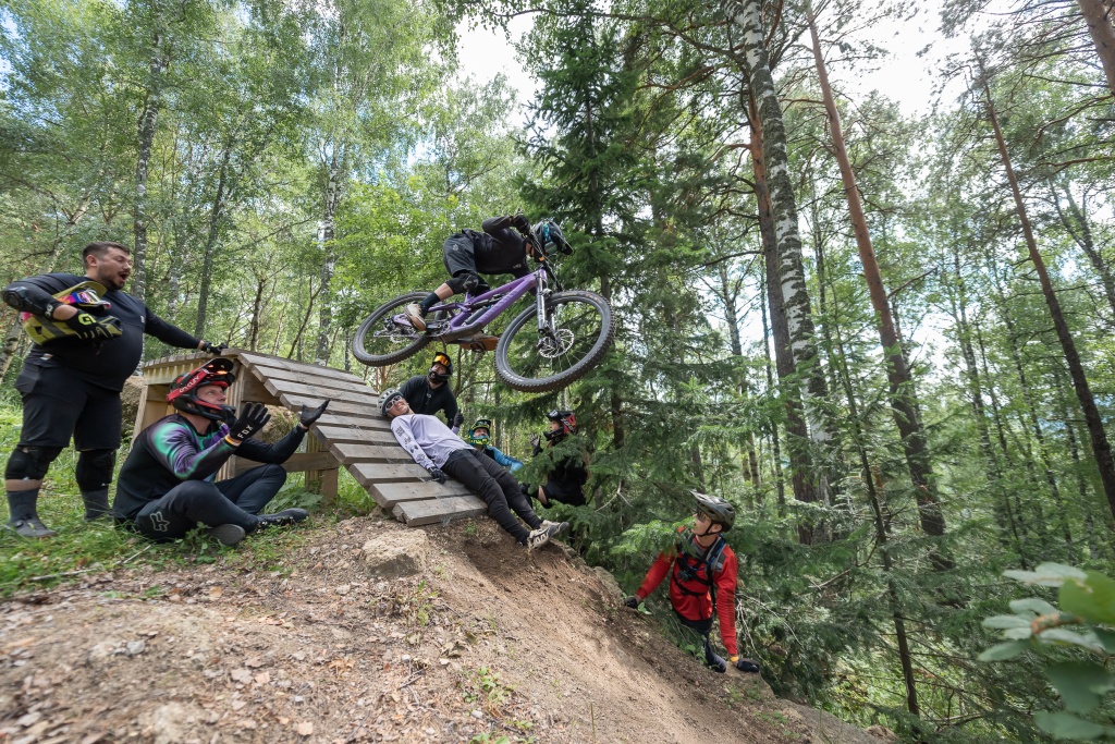 Отдельная ветка тренировочных сборов — дёртово-прыжковая группа от легенды фристайла Евгения Курникова.