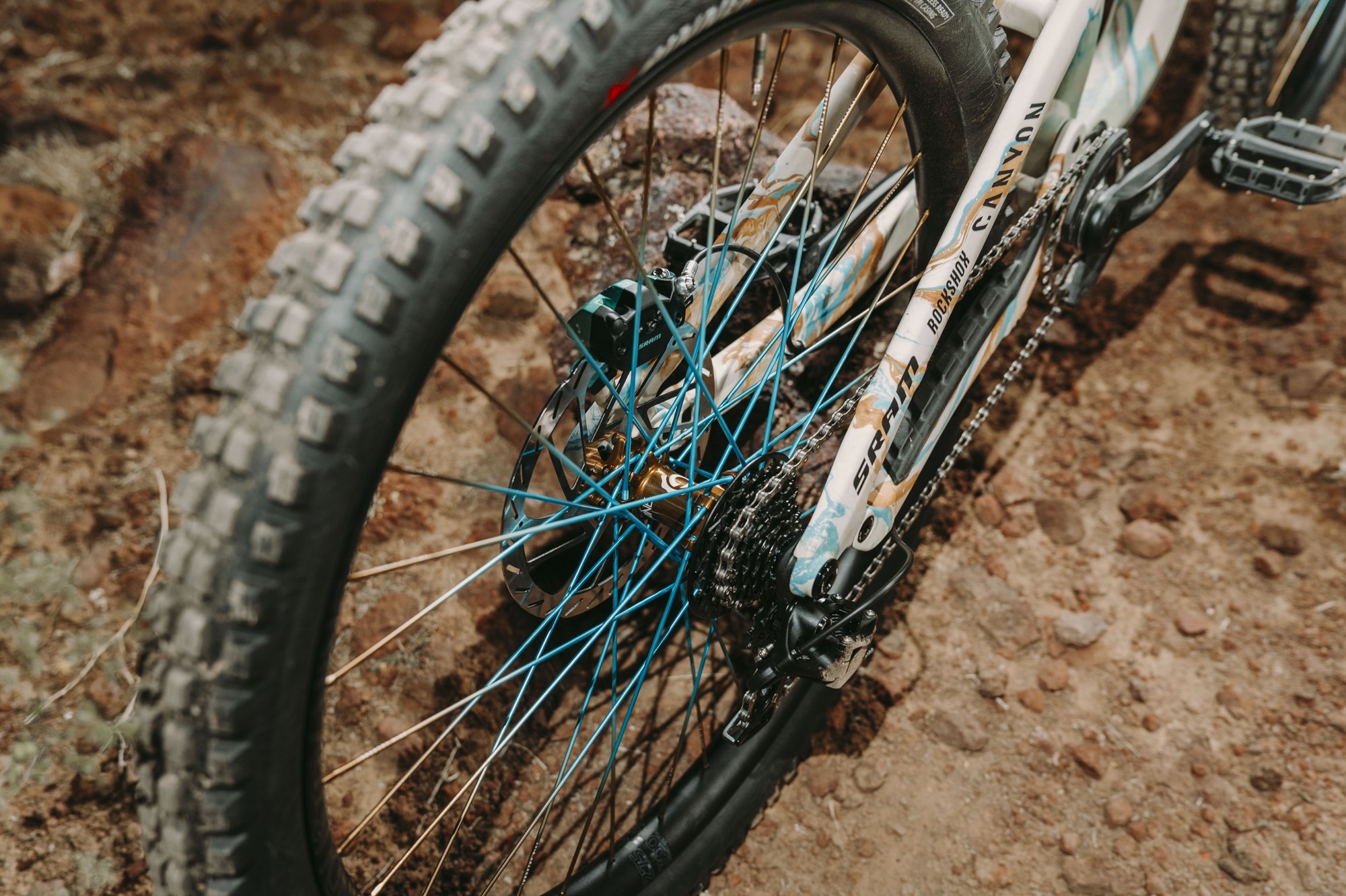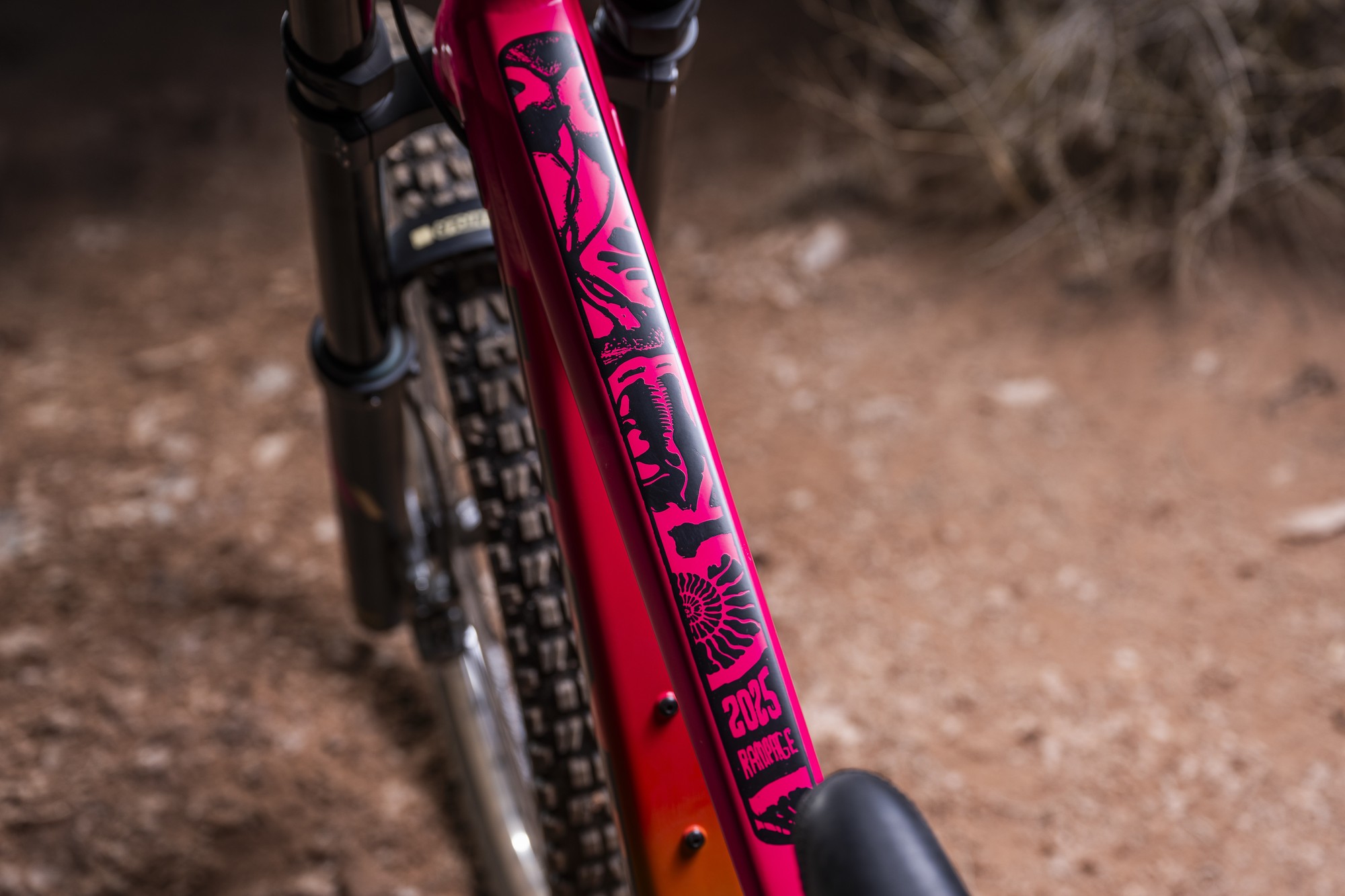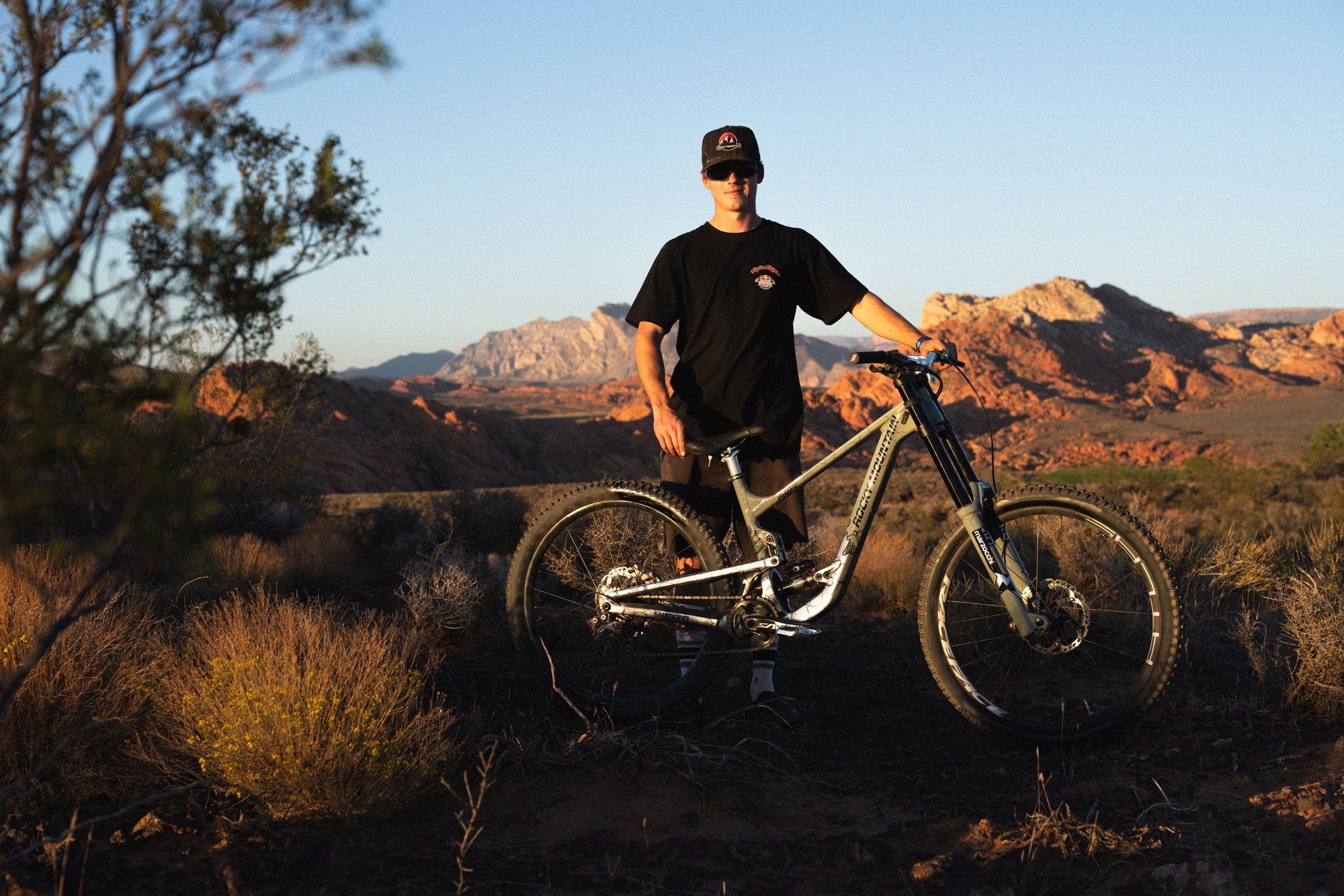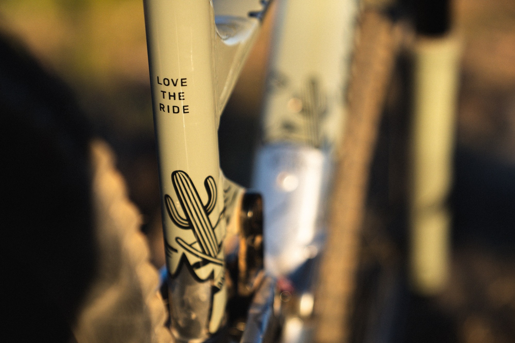 Хайден выбрал эндуро-байк с двухкоронкой, а на раме кастомная расцветка. Шалфейно-зелёный и хромированный цвет особенно важны для Хайдена. Дизайн явно вдохновлён пустыней и копанием: кирка, грабли, трещины в земле, кактусы и крылатая «no dig no ride» (не копаешь — не катаешь), которую знает каждый участник.