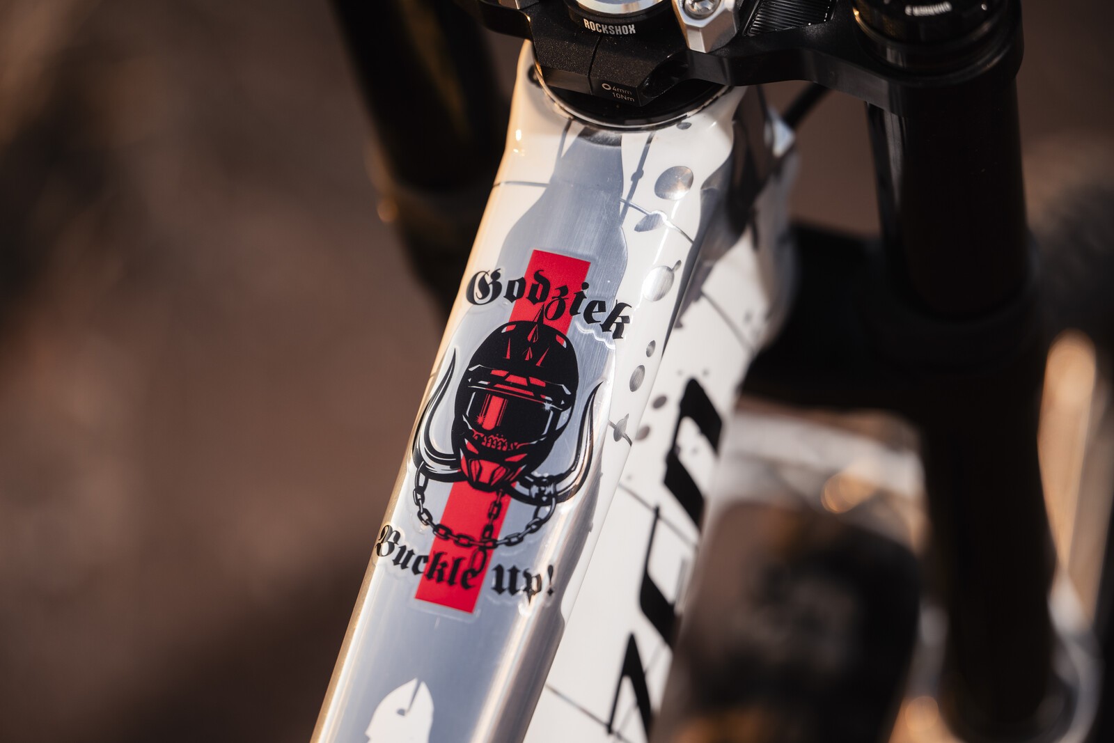 Как и у многих в этом году — у канадского фрирайдера расцветка нанесена не на сам байк, а на защитную плёнку Ride Warp. Стоит отдать должное — выглядит недурно!
