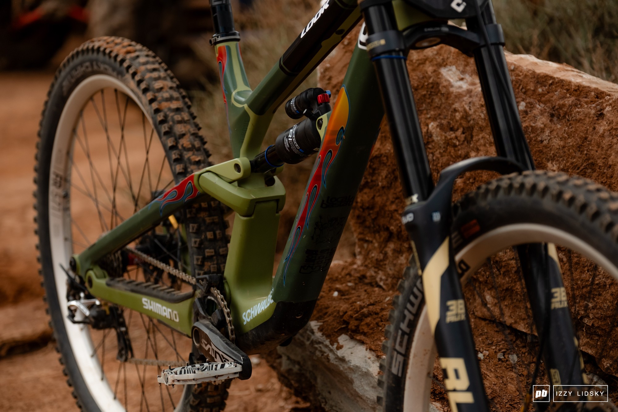 Yeti не особо запаривались с расцветками, спортсменам выдали байки в юбилейных цветах, приуроченных к 40-летию компании (кто помнит Yeti 303 DH Аарона Гвина, в такой же расцветке, который был приурочен к 25-летию компании?). На байке Рида Боггса поменяли местами желтый с бирюзовым.