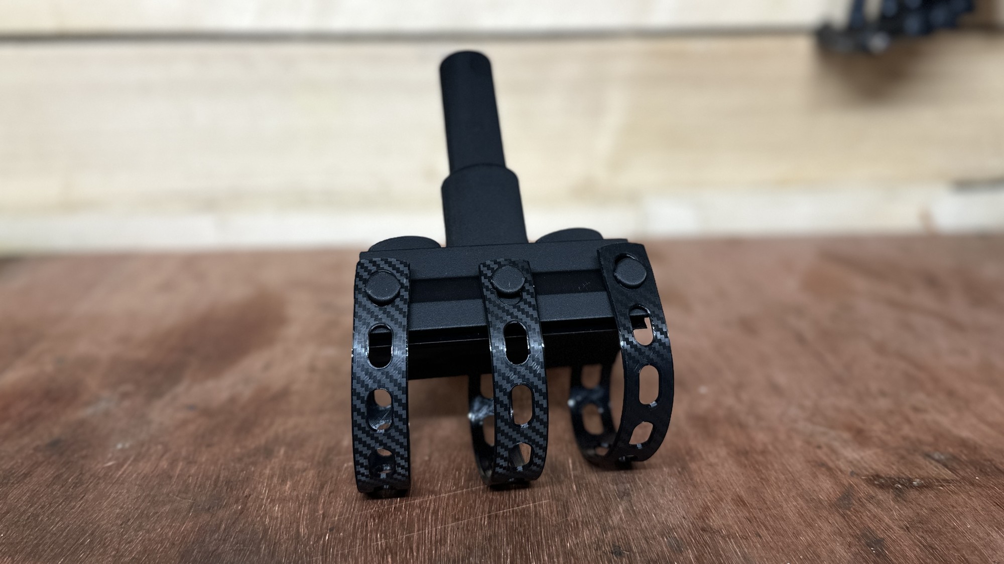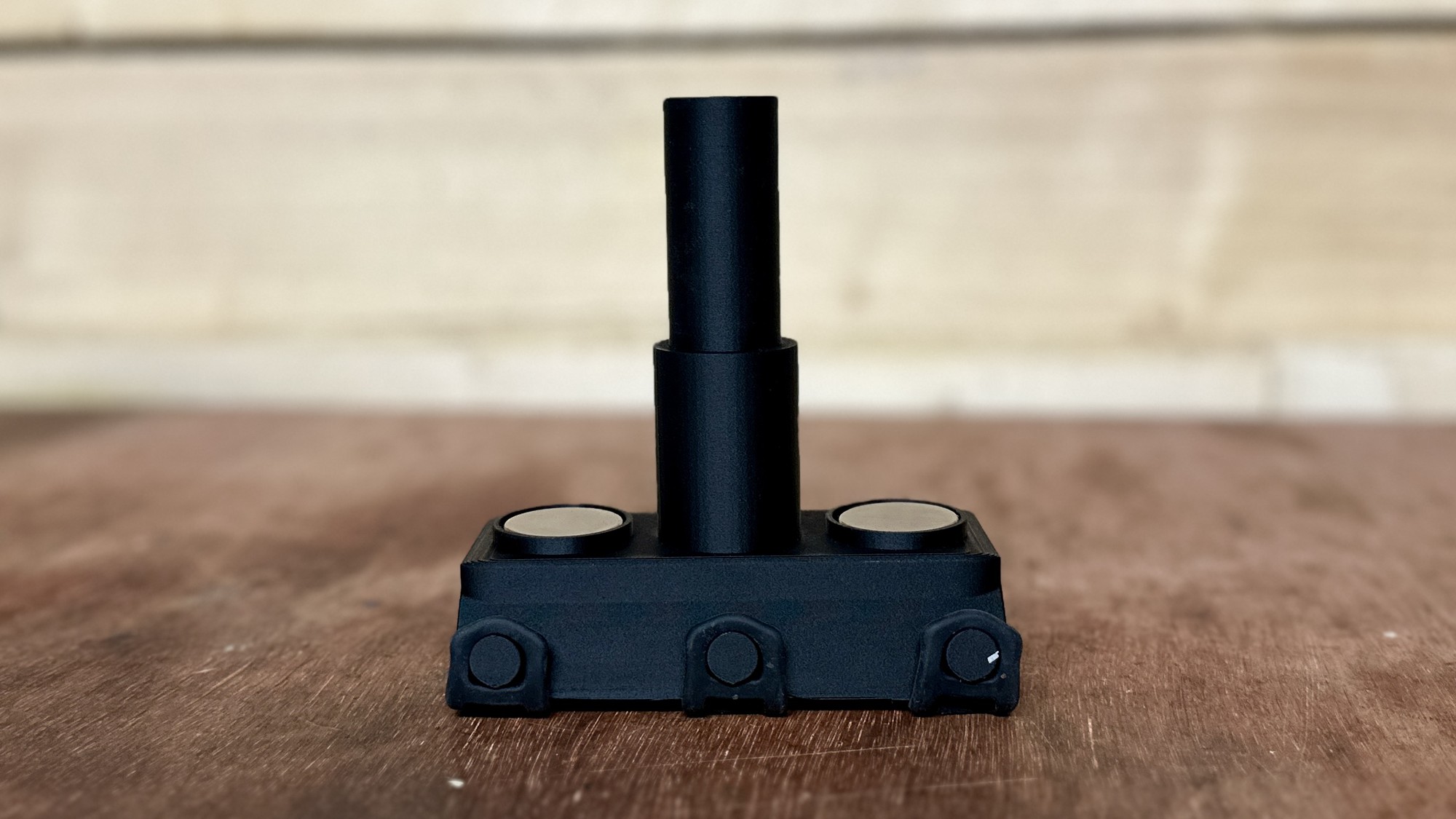 Чудо-штуку печатают на 3d-принтере. Снизу импровизированный «шток» под 1.5" рулевую, а выше под 1.1/8". По бокам вставлены магниты, чтобы можно было повесить на них болтики или шестигранники.