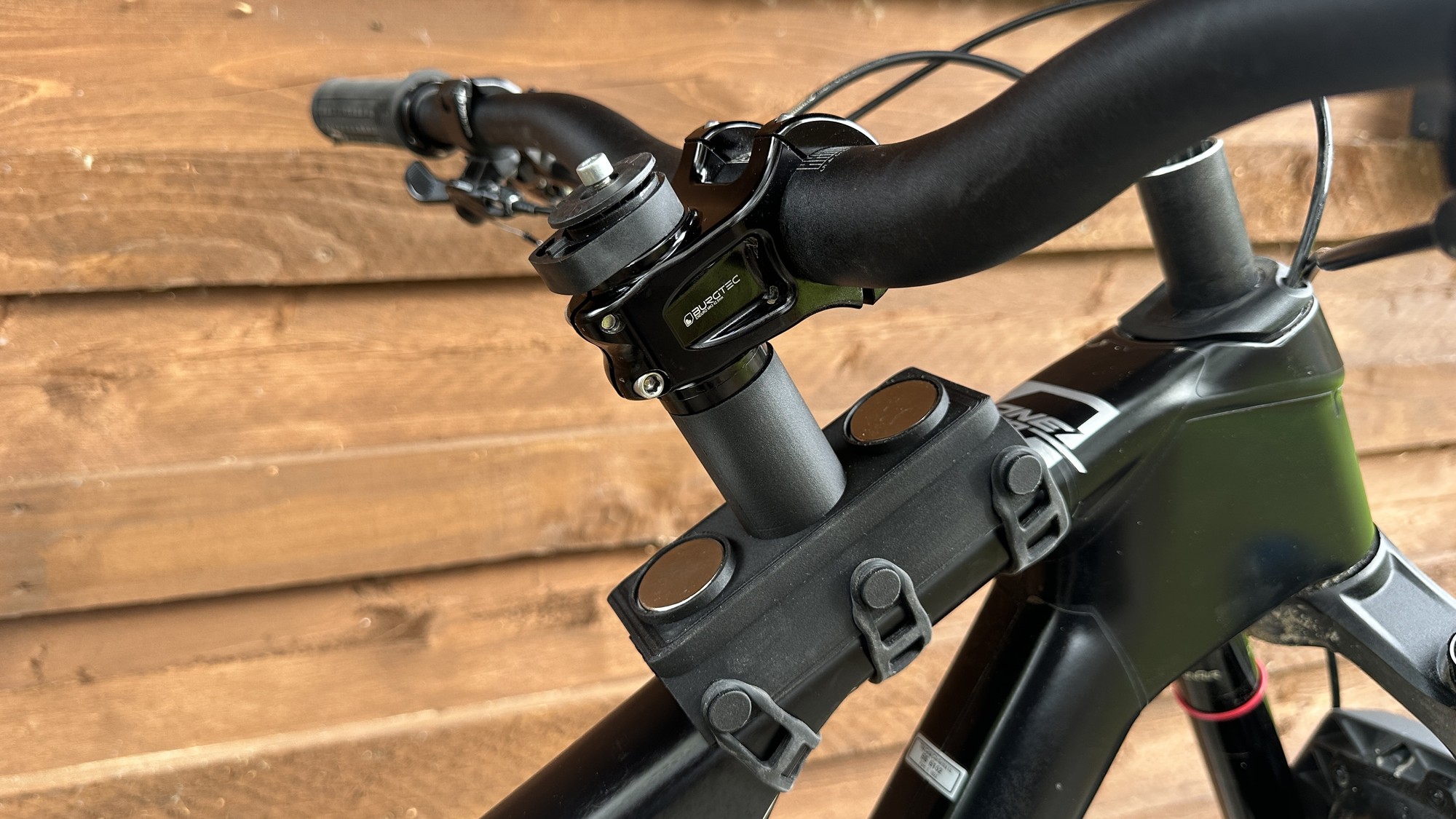 С тыльной стороны есть специальные резинки, которыми Stem-Dock крепится к верхней трубе.