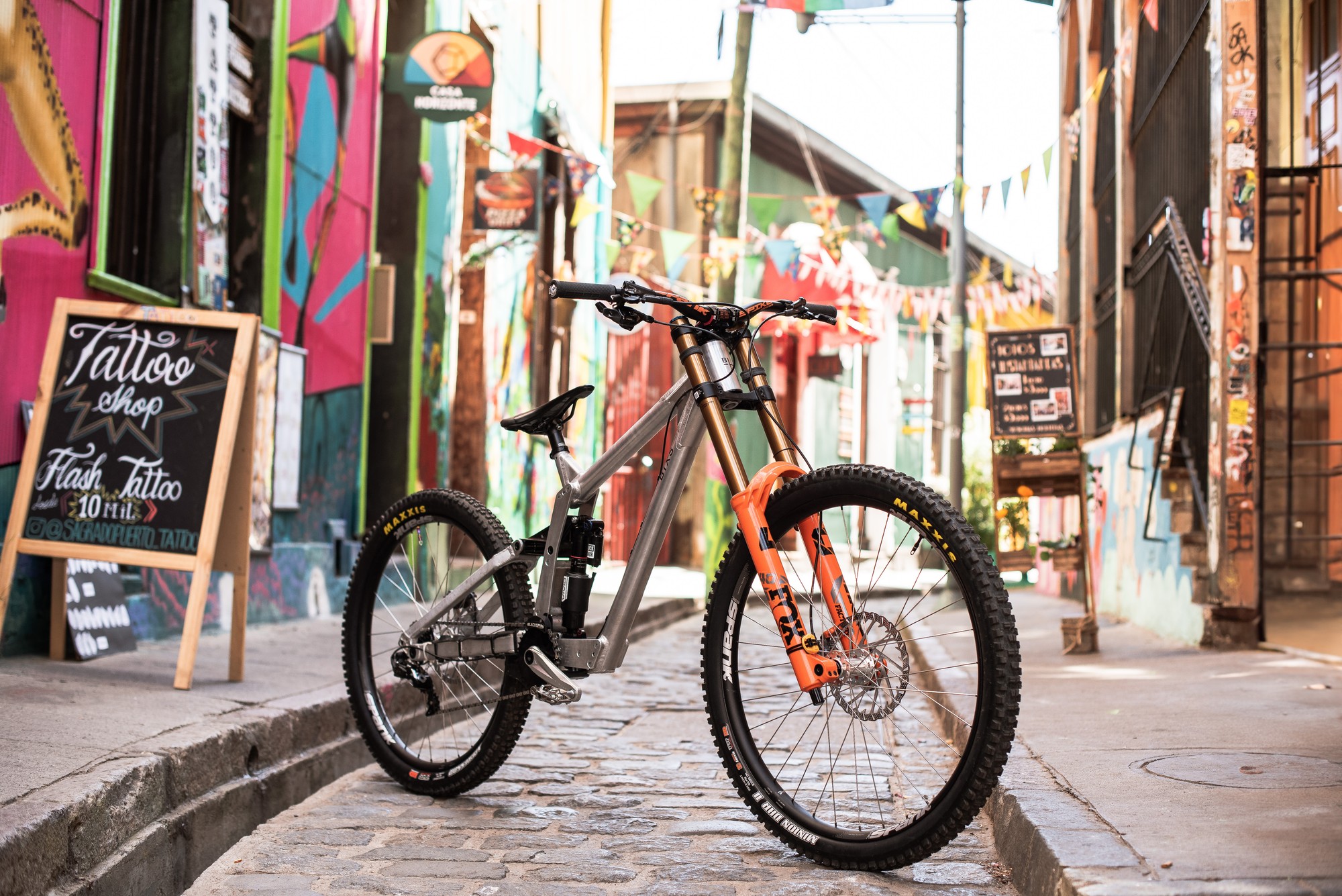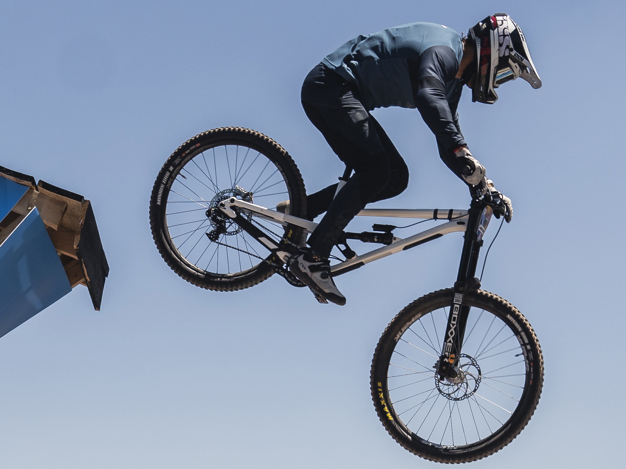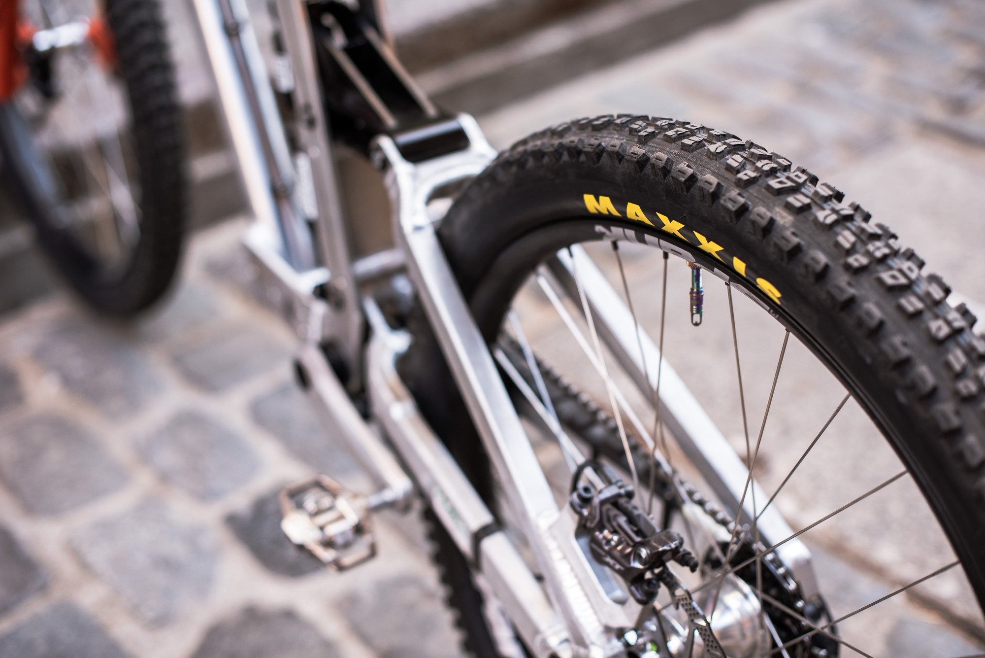 Для гонки в Чили Адриен выбрал заднюю покрышку Maxxis Aggressor с каркасом Double Down, давление 38psi, без вставки. Спереди Maxxis Minion DHF II с таким же каркасом и давлением 33psi. Компаунд у обеих 3C Maxx Terra.