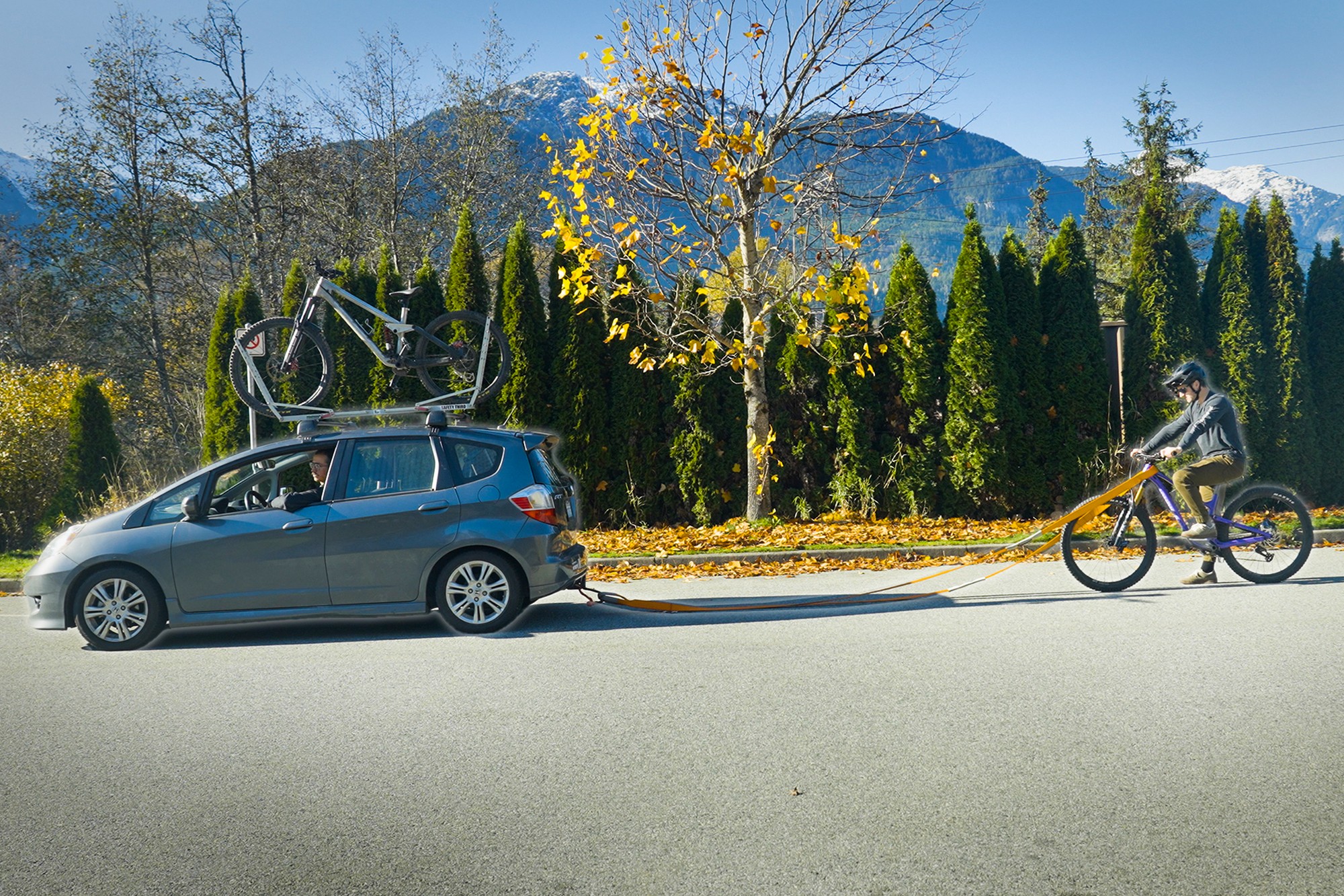 Один из самых важных тестов — за сколько метров тормоза смогут остановить автомобиль Honda Fit. Дарио отвечал за разгон автомобиля до 20км/ч, после чего авто двигалось накатом, а Мэтт на байке сзади должен был тормозить и остановить авто через буксировочный трос. Тачку разгоняли до 20км/ч, после чего она двигалась накатом. В определённом месте на дороге стояли конусы, от которых и начиналось торможение. Мэтт честно признаётся, что результаты теста получились не очень честными, так как держать буксировочный трос в постоянном натяжении перед началом торможения было трудно. Но результаты теста примерно соответствуют «ощущениям» от тормозов на трейле.