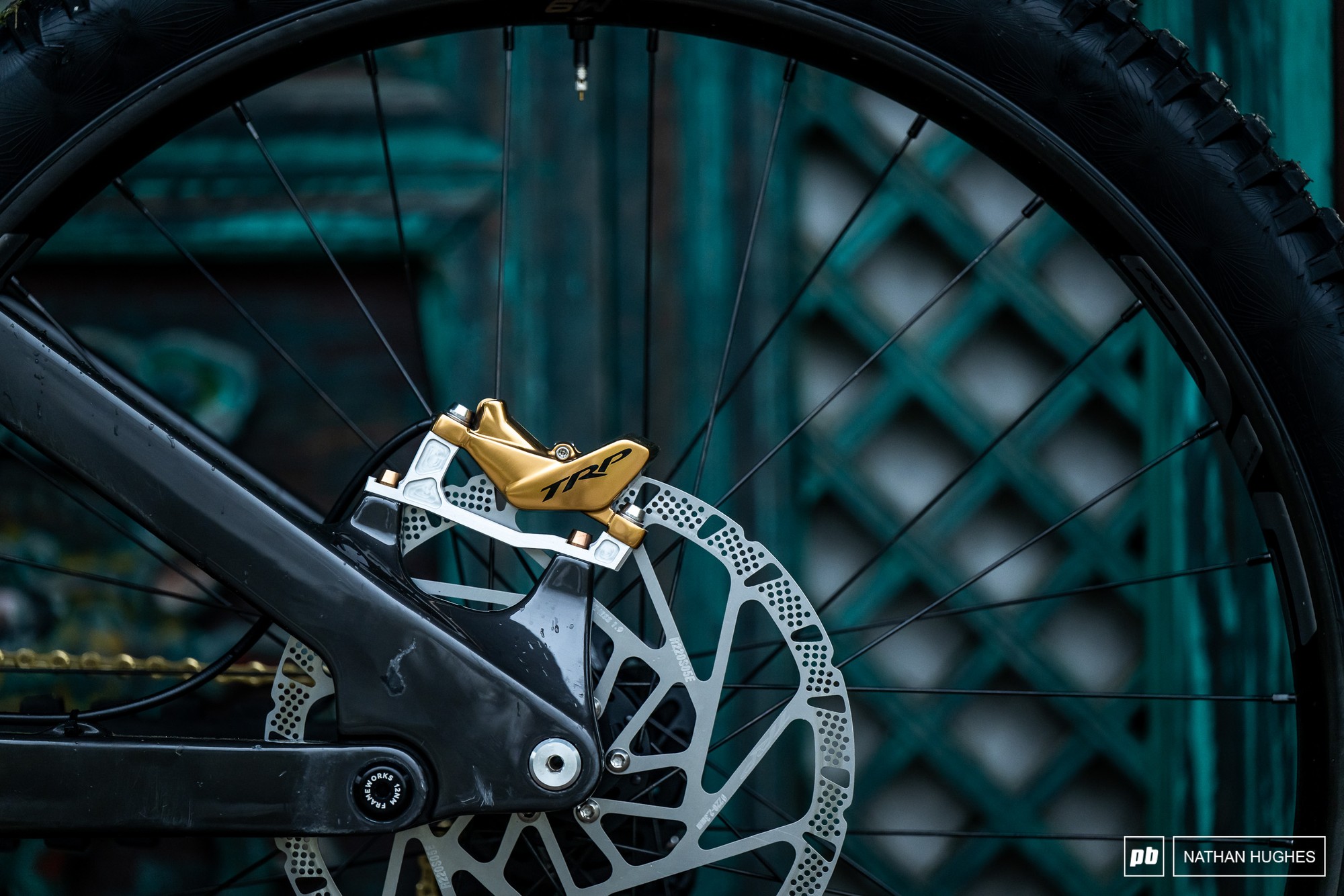Золотые акценты на байке даже не смотрятся пошло. 220мм роторы вкруг.