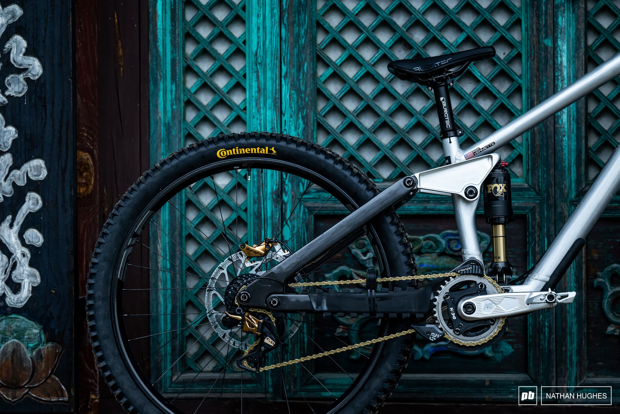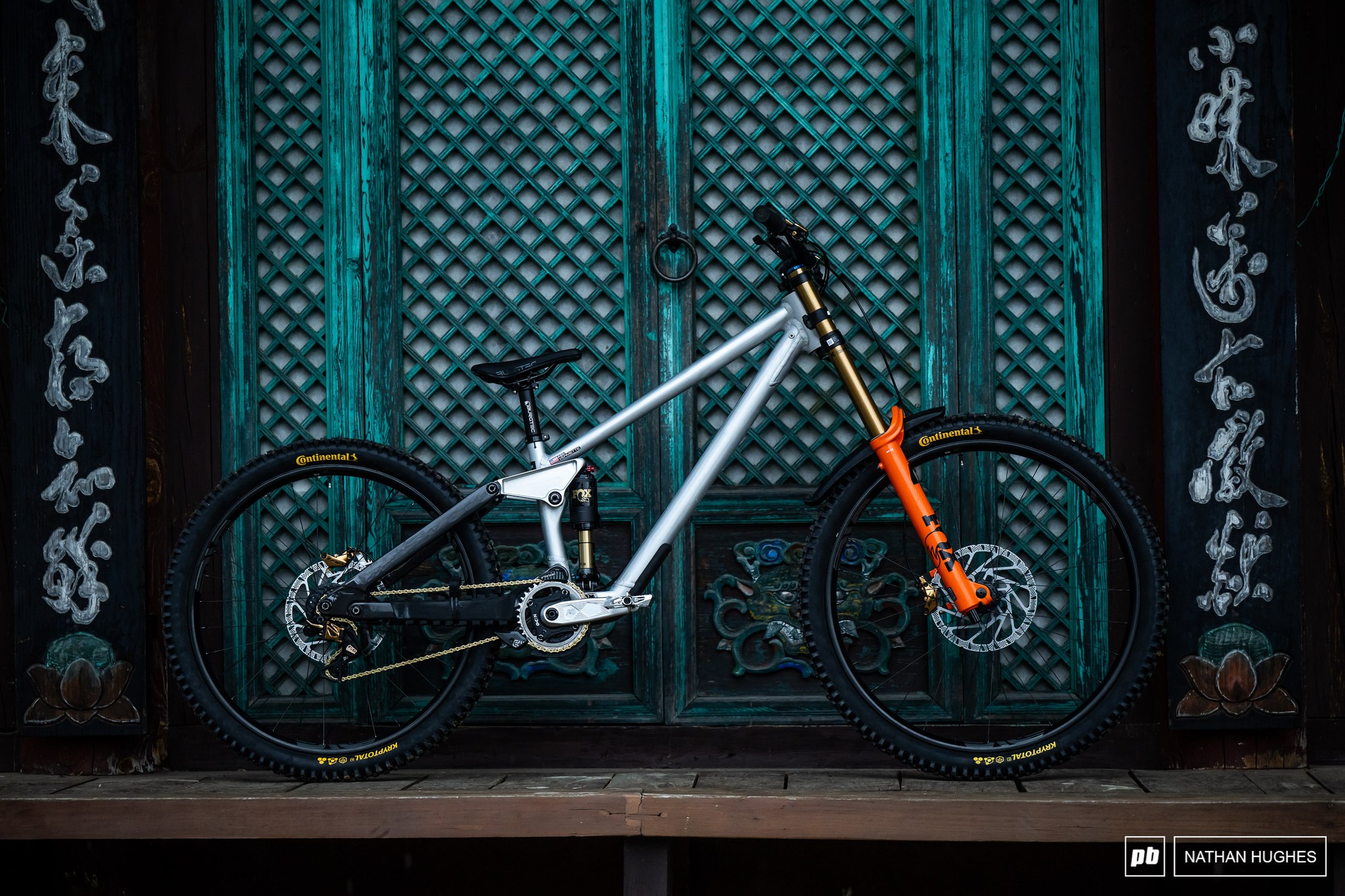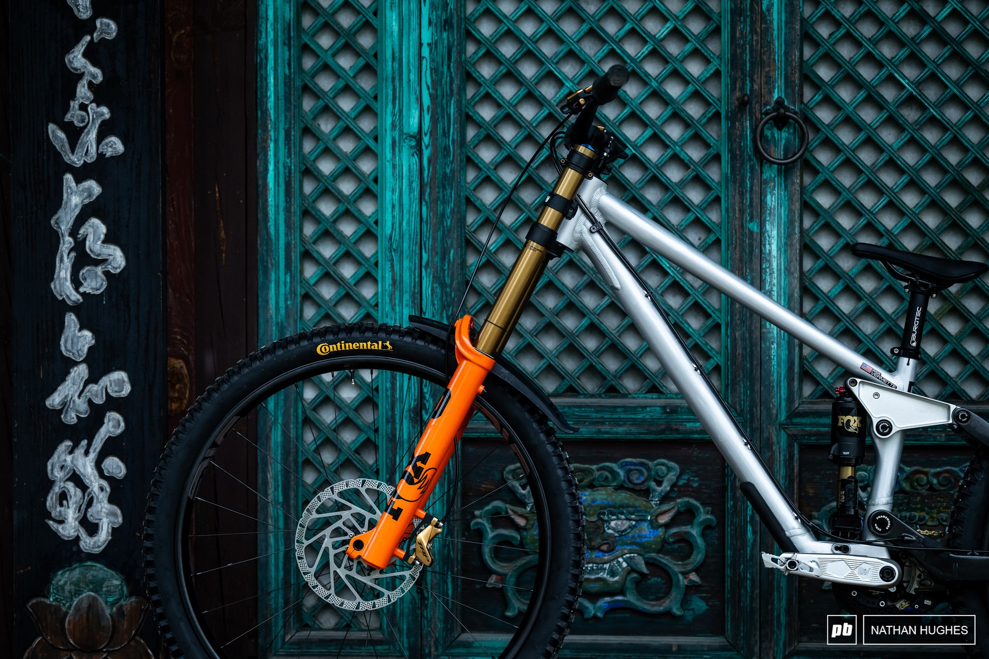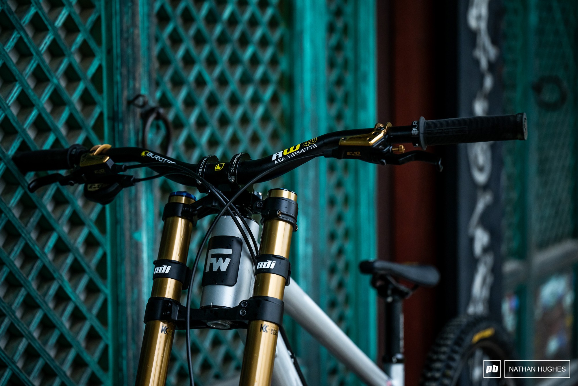 Относительно байка, на котором Аса выиграл Hardline в Тасмании в этом году — изменения не слишком заметные. Здесь новая, серийная вилка с оранжевыми штанами. Что внутри вилки — не раскрывают, но раньше у Асы был кастомный тюн и более высокое стоковое давление.