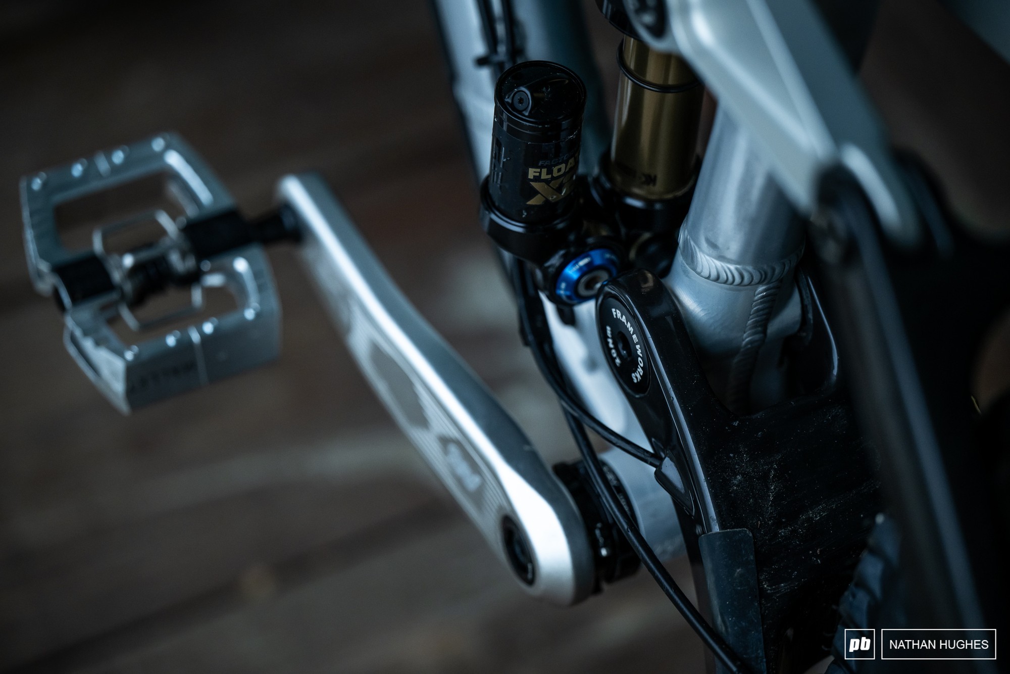 Говорят, шатун не цепляет аморт, несмотря на нестандартное расположение бачка. И голень тоже. На осях есть лазерная гравировка момента, приятно.
