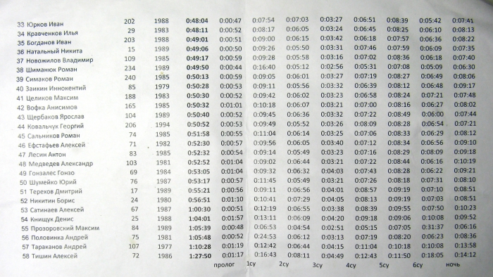Справедливости ради замечу также что остальная организация была на высоте. Электронная засечка удобна. Проживание (даже самое бюджетное) удобно и комфортно. Питание в столовой — супер (сытно и разнообразно). Компания отличная, люди старались идти на встречу, исправлять проблемы. Ночной СУ — просто шикарен, эксперимент удался!