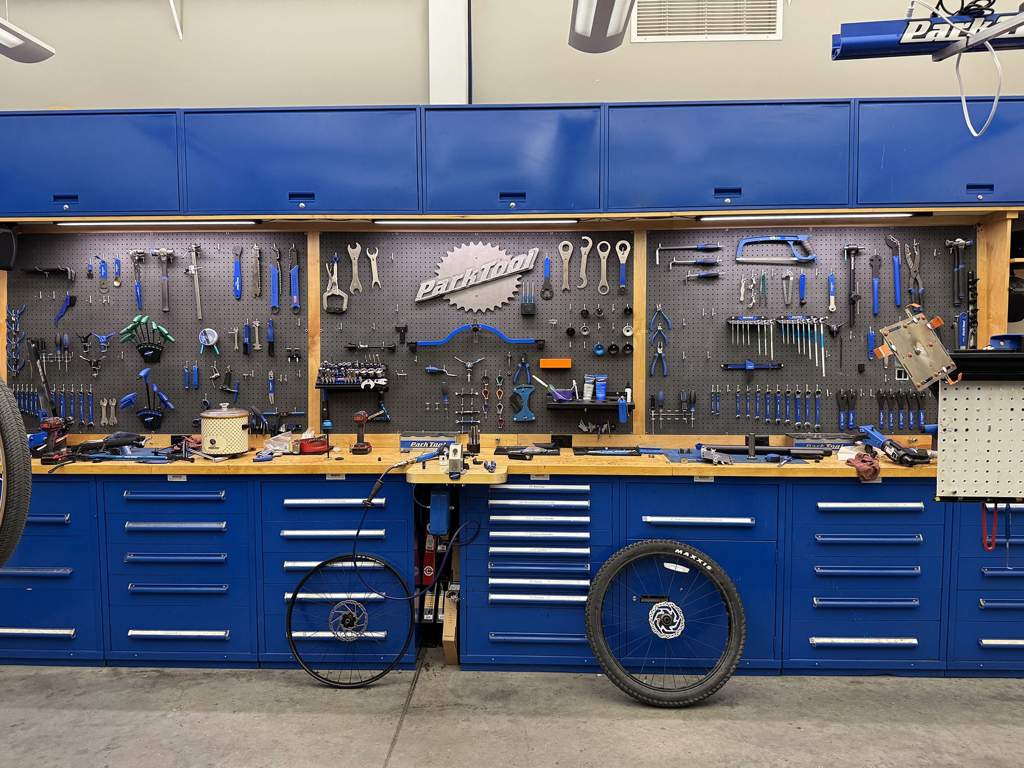 А внизу находится мастерская для сотрудников, которым нужно починить свою повозку, она же выступает в качестве тестовой площадки для новых инструментов. Говорят, здесь была новинка от Park Tool, но её пока не разрешили сфотографировать.