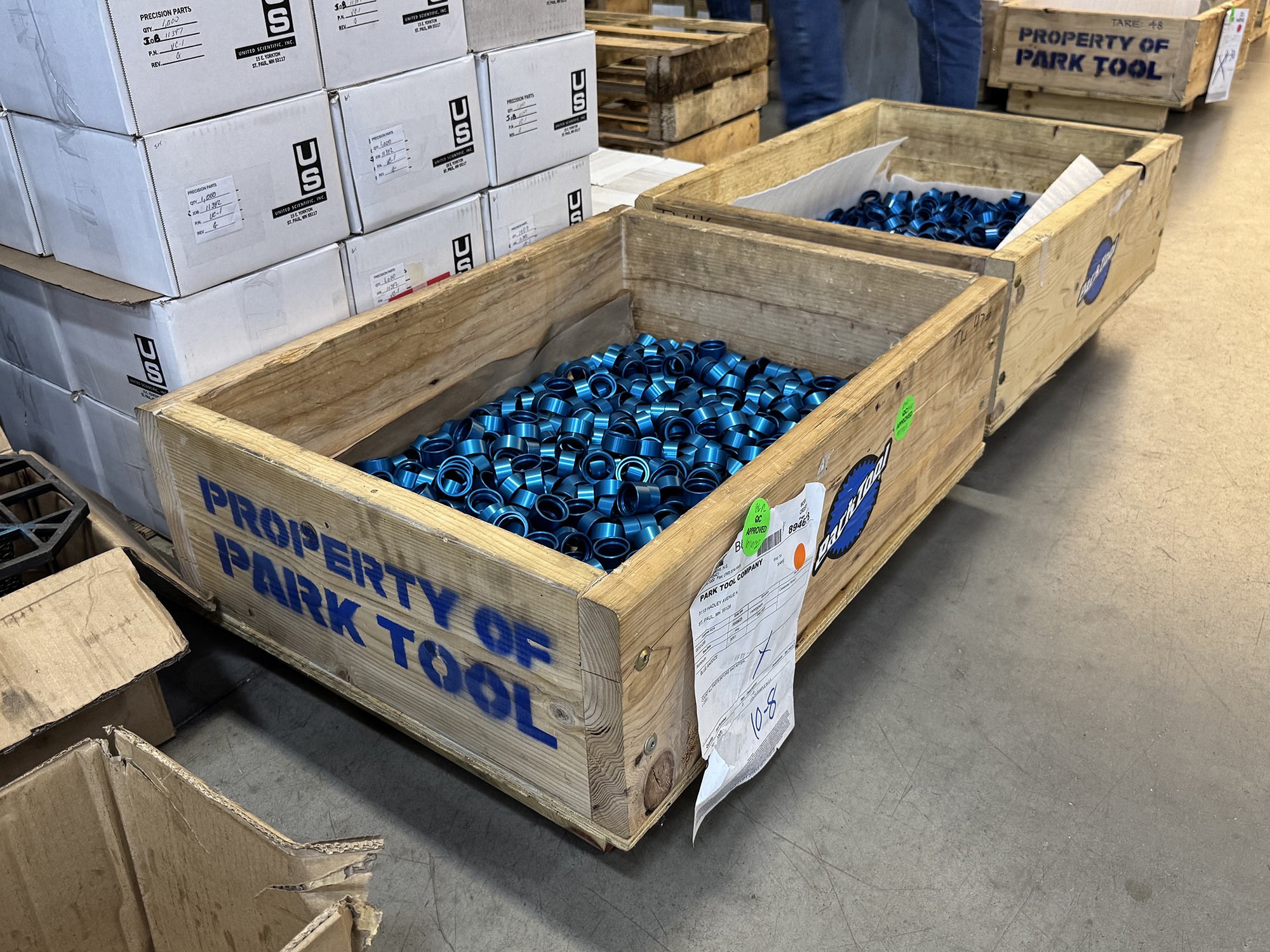 Двигаясь дальше вдоль стены попадаешь на склад готовой продукции, откуда Park Tool рассылают заказы по всему миру. И хотя можно купить у них инструмент напрямую — большинство заказов компания отгружает другим компаниям, а не пользователям.