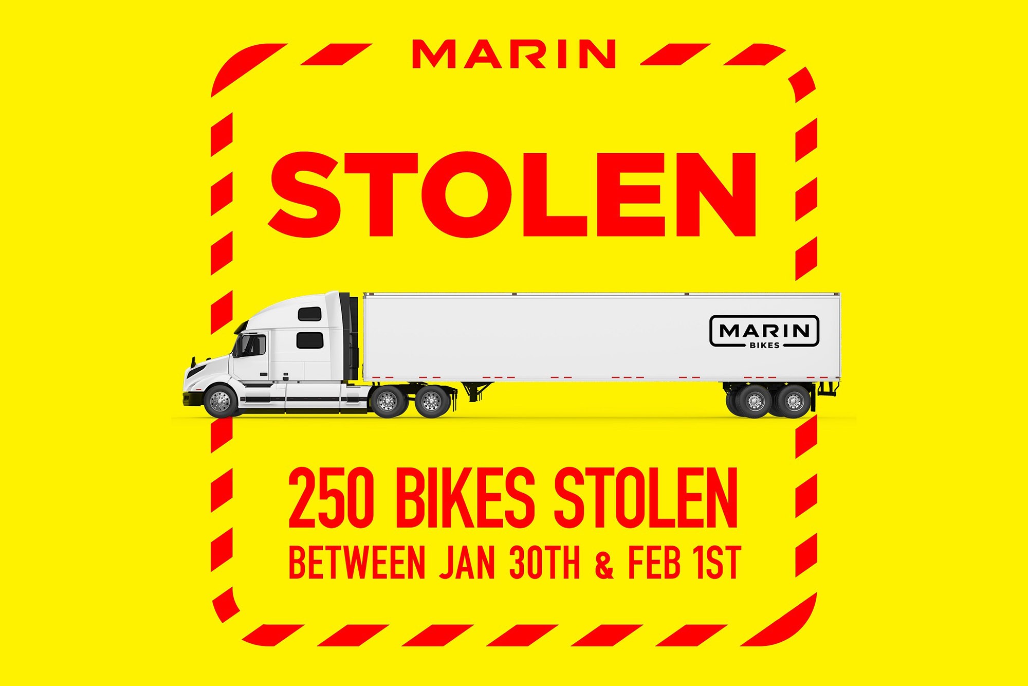 Где-то между 30 января и 1 февраля у Marin Bikes Canada украли 250 велосипедов.