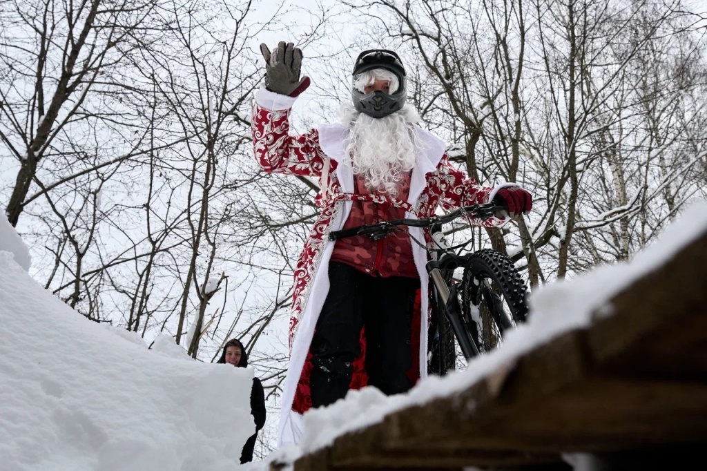 И даже настоящий велосипедный Дед Мороз почтил нас своим присутствием!