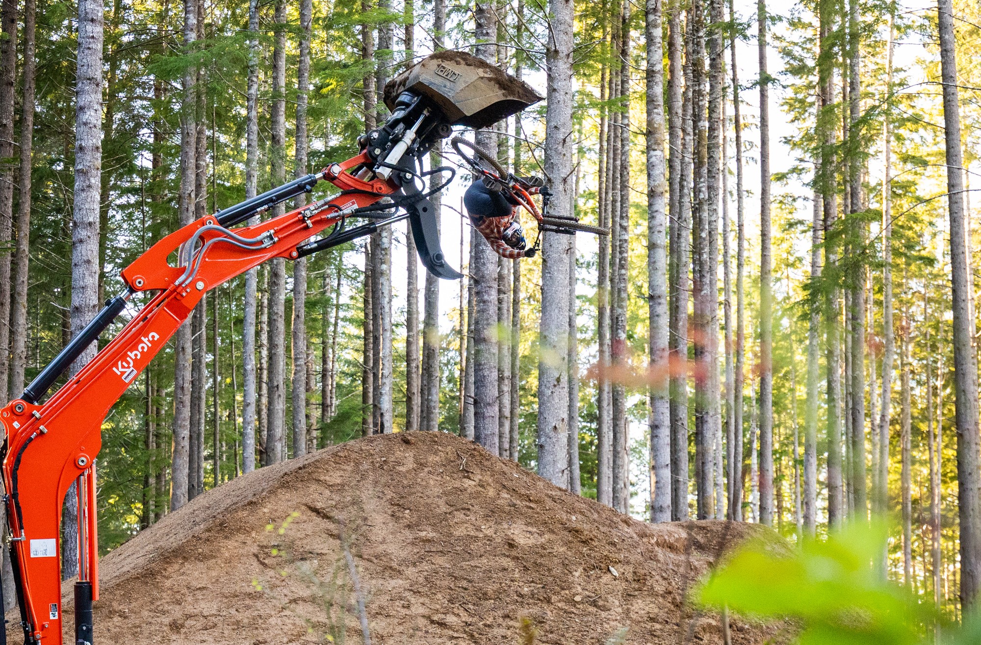 В этом году я работаю на компактном экскаваторе Kubota U55-5 с поворотным механизмом и компактном гусеничном погрузчике SVL 97-3. Они уже принесли огромную пользу в дальнейшем развитии моего тренировочного полигона дома в Бенде, а также в создании системы трейлов Ванога по пути к горе Бачелор прошлым летом. Моя страсть — это ландшафтный дизайн и езда на велосипеде, и это партнерство полностью это отражает. Я невероятно горжусь тем, что представляю Kubota во всей красе. — Карсон Сторч