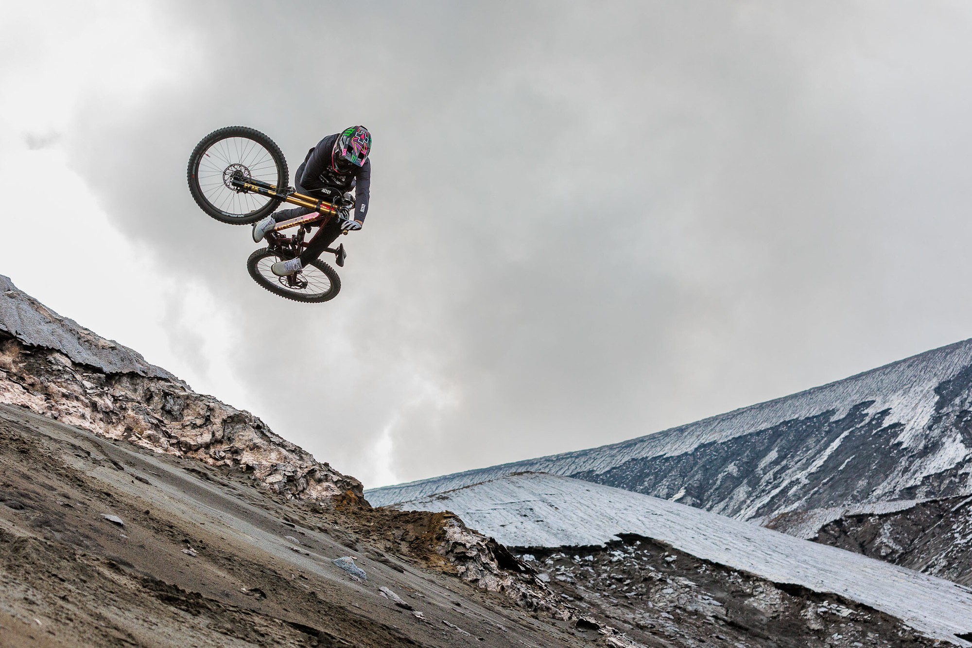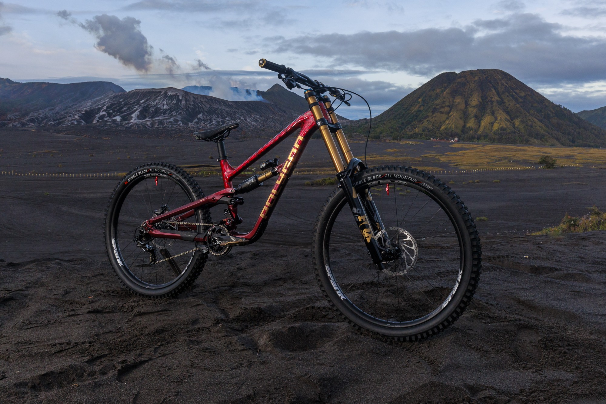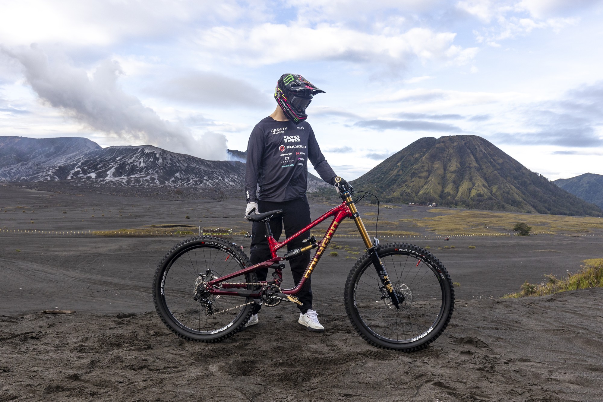 Чтобы как-то красочно отметить эту новость — Сэм рванул в Индонезию в гости на фабрику Polygon, где получил новенькую раму Collosus DH-R в кастомной расцветке. А первые тесты байка были в чудеснейшем месте — у вулканов Бромо и Видодарен на острове Ява. Со склонов первого Сэм даже смог пару раз скатиться в компании Дэна Вульфа.