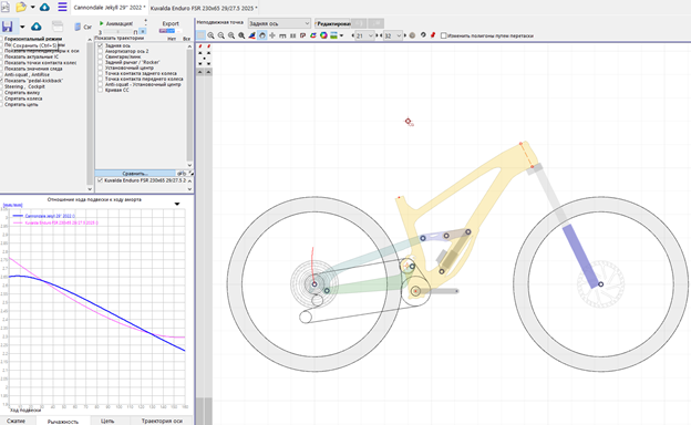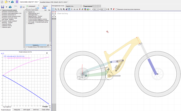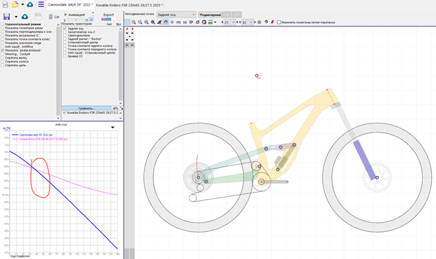 5. А на маленьких звёздах педалкики уменьшаются, НО! Антискваты при этом также остаются в обоих случаях в адекватных значениях, что означает, что эти подвески хорошо педалируются во всём диапазоне передач: