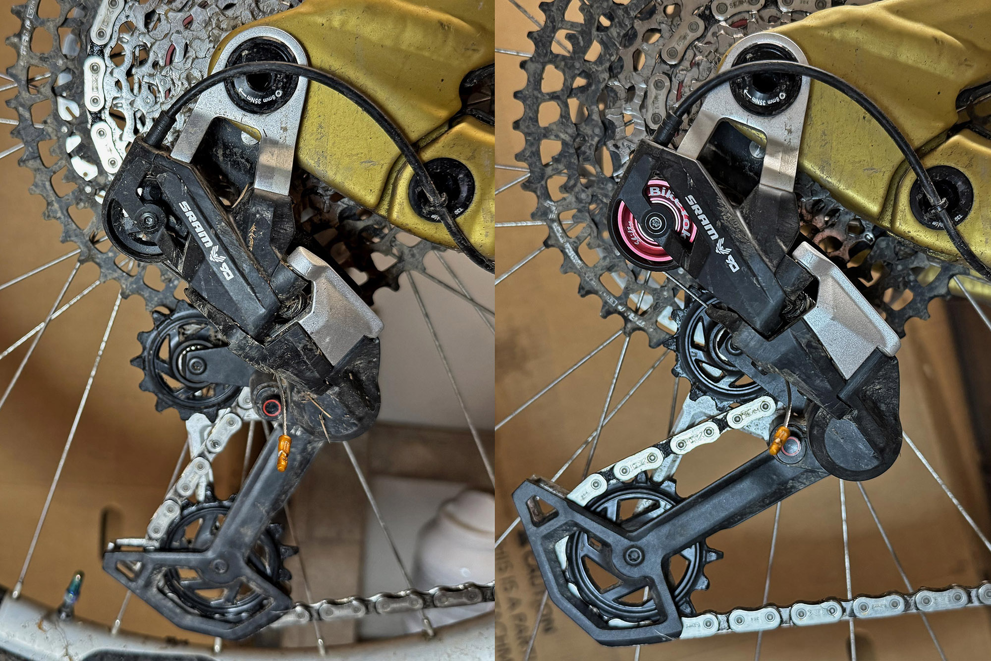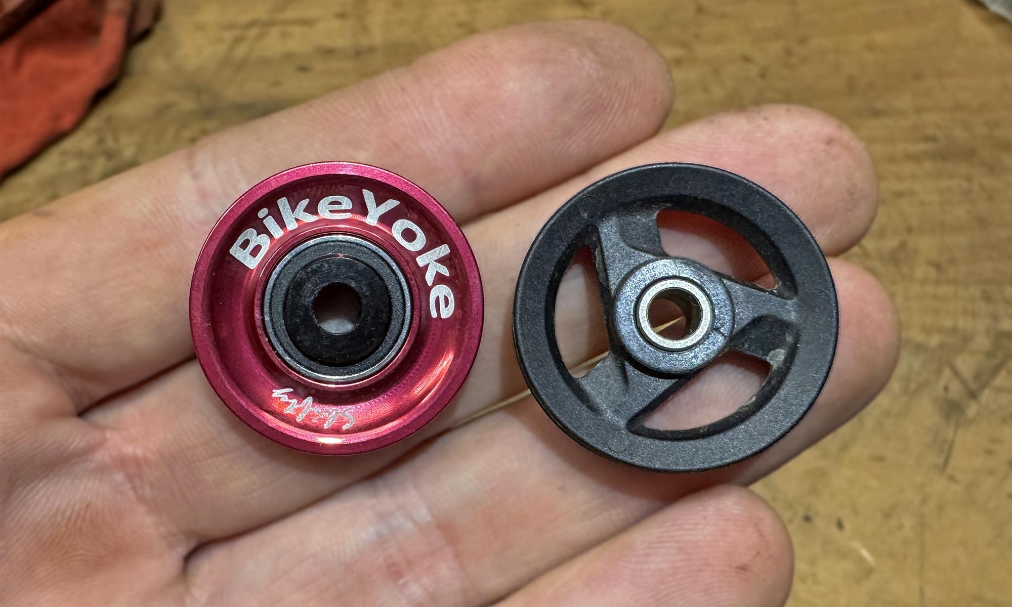 Ролик BikeYoke и оригинальный ролик Sram.