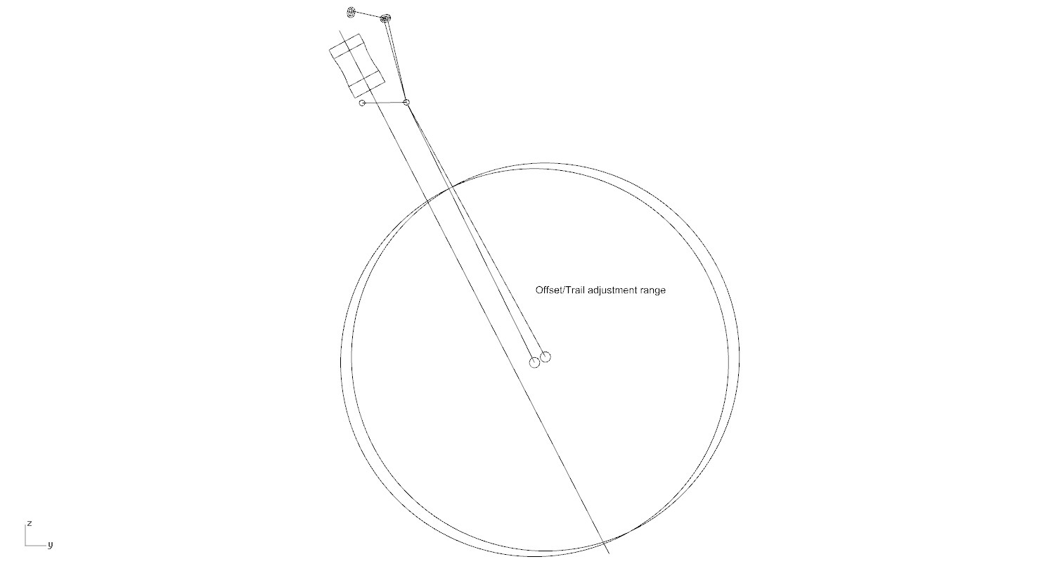 Как учит нас семья и школа — такая параллелограммная вилка будет менять угол оффсета, и чтобы слегка отрегулировать его для комфортного положения у Лоуренса припасён флип чип в нижней короне. Общий диапазон регулировки 24мм, для точной подгонки есть 13 положений с шагом по 1.8мм.