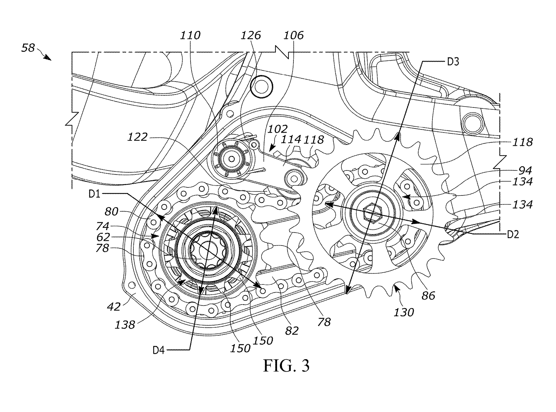 Также приводится чуть другая мотивация. Патент прямо указывает, что этот узел можно адаптировать не только под даунхилльный байк, но и под (вы уже угадали) электричку! Благодаря игре с соотношением звёзд внутри можно оптимизировать всё это дело под установку электромотора. Причём можно как сделать электричку, так и полноценный электромопед, которому педали будут не нужны. То есть это не только фишка «Demo», а базовый модуль трансмиссии, который можно использовать и на других платформах, включая электрички. А мы знаем