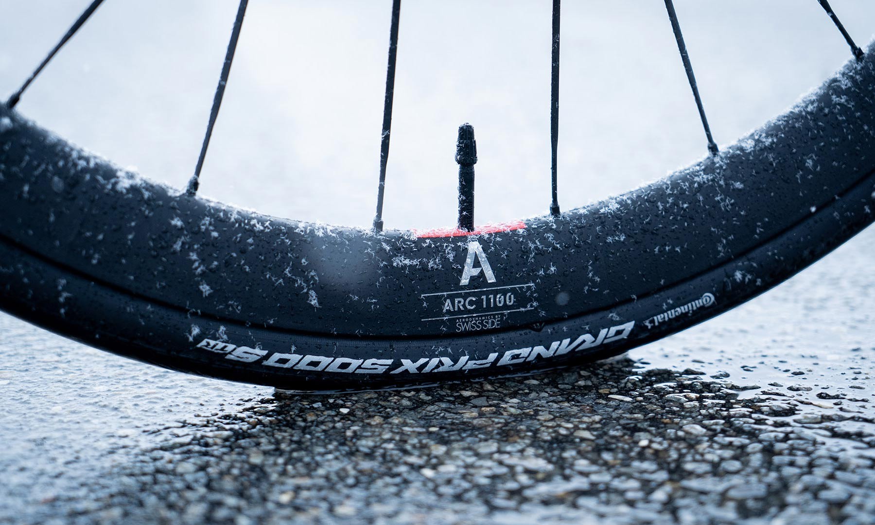 Более лёгкие и более жесткие карбоновые спицы позволяют использовать меньшее количество спиц, всего 18 штук спереди, относительно стандартных для ARC 1100 24 спиц. Причём спицовка на переднем колесе смешанная: с правой стороны она радиальная, а с левой стороны в два креста, на левой стороне спиц больше в 2 раза относительно правой стороны. У заднего колеса 24 спицы и радиального расположения спиц там нет, зато в 2 раза увеличенное количество спиц со стороны кассеты.
