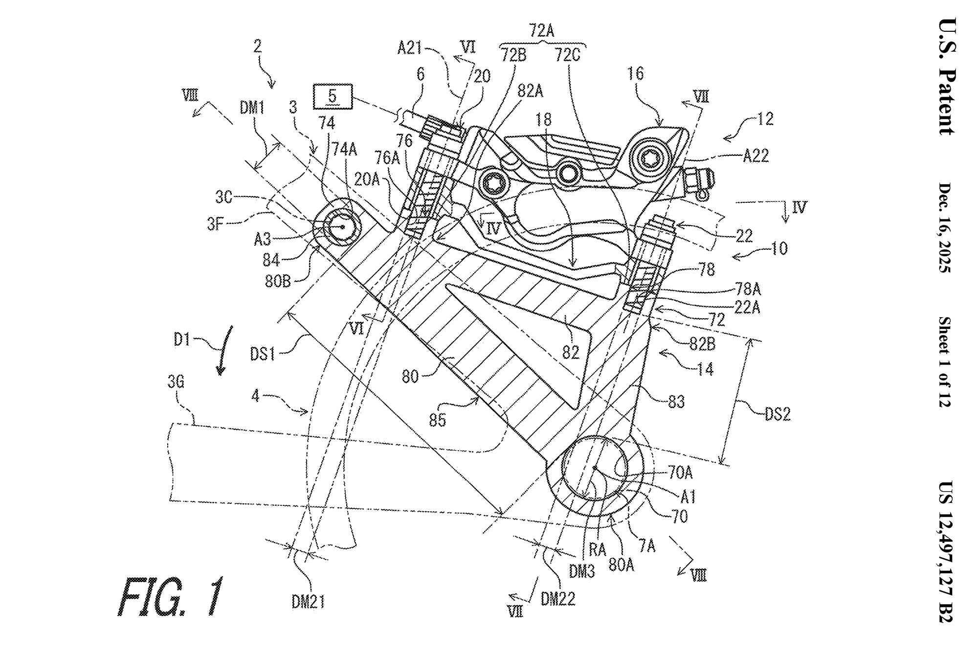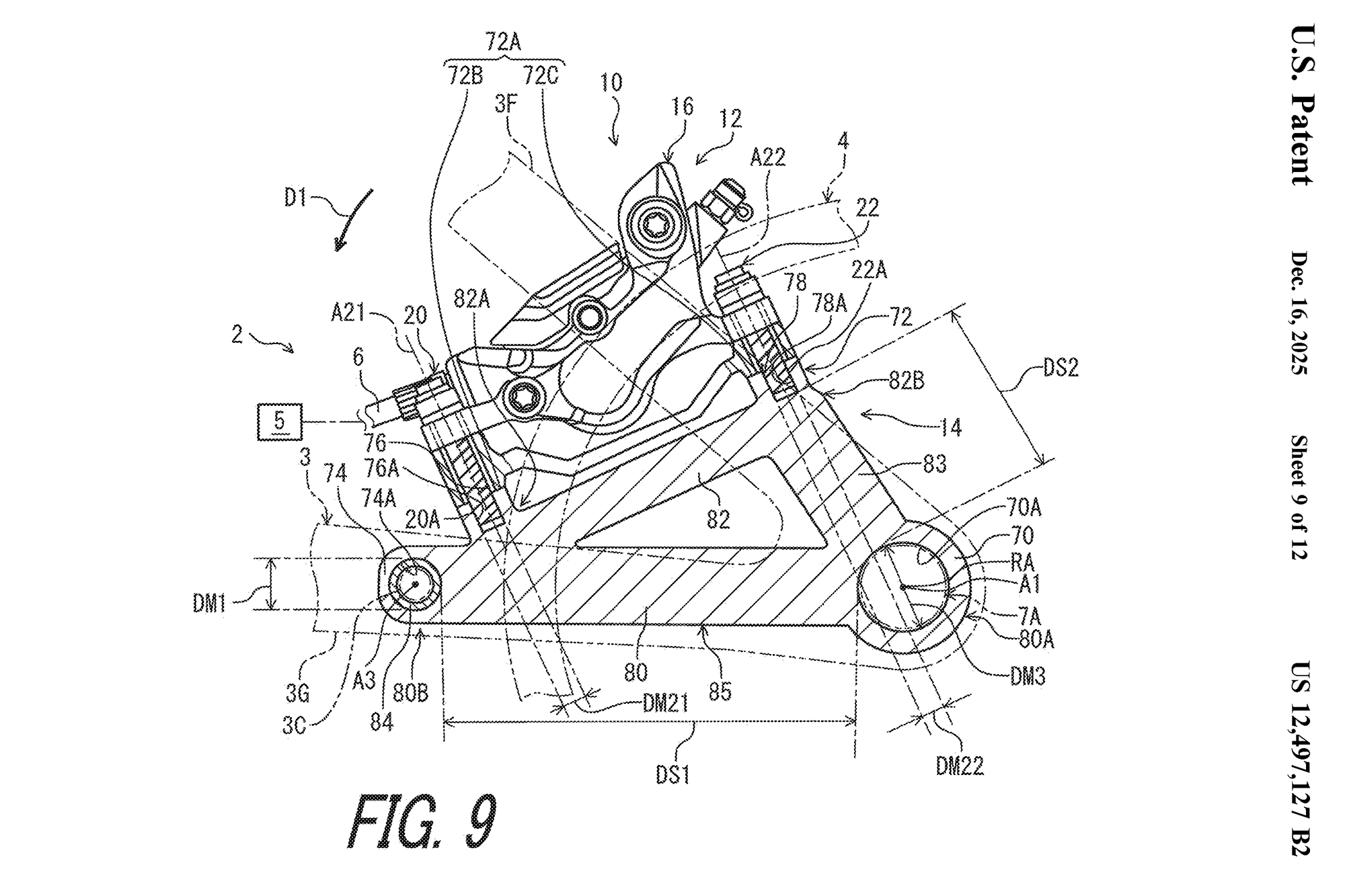 Если вы словили дежавю — это неспроста! Этой зимой тов. SergeiPikulin уже рассказывал про патент соосного крепления тормоза Universal Brake Mount (UBM), которое пытаются запатентовать SRAM. Причём летом 2024 года Shimano уже подали заявку на патент с похожим креплением калипера к раме, только в ней в калипере был интегрированный адаптер, который точно также крепился на раму. Что же, теперь Shimano пытаются запатентовать такое крепление для тормозного адаптера. Пинк наткнулся на патент US №12497127 B2 от 16 декабря 2025 (дата подачи заявки 2 декабря 2022), который описывает устройство такого тормозного адаптера.