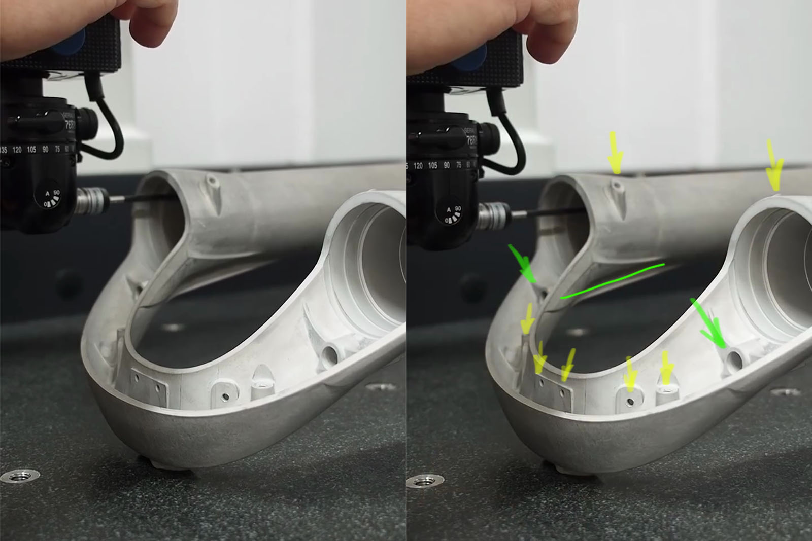 А у штанов из видео горилла округлая, а-ля уходящее поколение Fox. Но если у «лисиц» горилла была с множеством рёбер жесткости, то здесь их практически нет, зато есть множество отверстий. Помеченные желтой стрелкой скорее всего могут выступать в качестве крепления для стокового грязезащитного крыла. А вот помеченные зелёным отверстия могут быть портом для клапанов сброса избыточного давления из штанов. Уж больно они большие и отливка подозрительно уходит прям под сальники и пыльники. Пока мы не видели такой реализации ни у одного из производителей, что в принципе и не удивительно. Это не лучшее место для установки портов, ведь сюда постоянно летит грязь с покрышки.