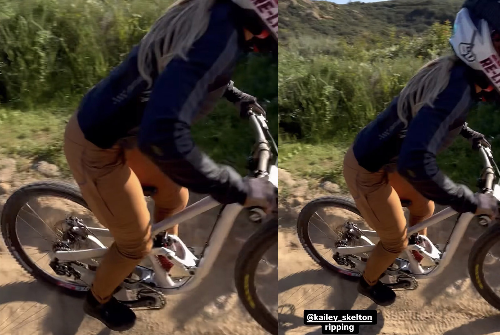 Даунхилльный прототип от Ari мы видели на гонке в Lake Placid прошлой осенью, но тогда он был в чехле, а теперь промелькнул на страничке Кейли Скелтон без него. Компоновка слека напоминает перевёрнутый Specialized Big Hit начала 10-х с вертикально расположенным амортом. Это 4-рычажка с шарниром на нижних перьях. Верхние перья давят в единственный линк, который снизу прикручен к вертикально установленному аморту.