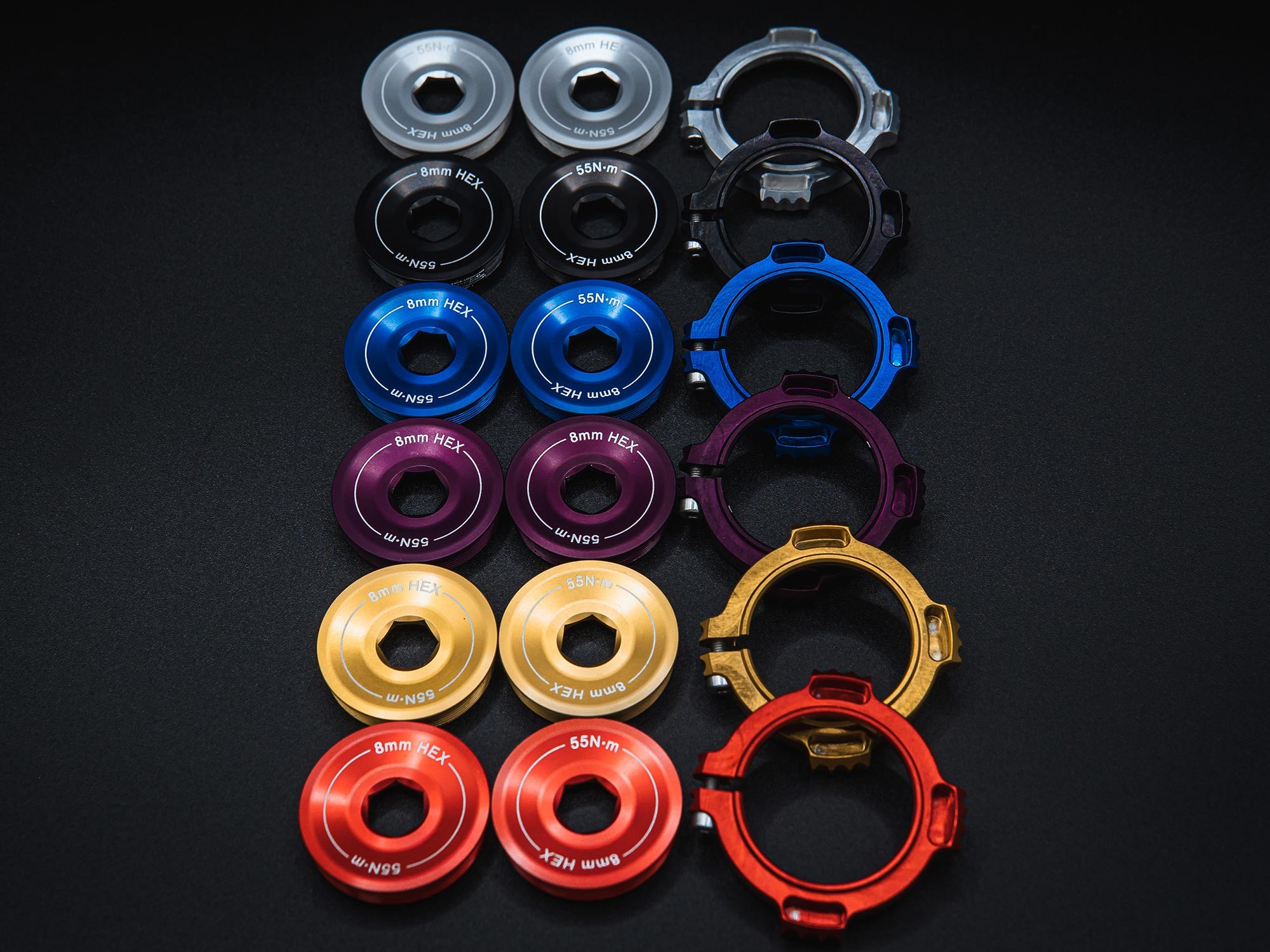 Кроме того, ActoFive добавили новые цветовые решения, за небольшую доплату позволяя покупателям выбирать из 6 вариантов анодировки оснастки. В стандартной комплектации гайка подстройки и самовыжимной болт будут чёрными, но если докинуть 20€ — можно выбрать: серебристый, синий, фиолетовый, золотой, или красный вариант. Обладателям обычных Signature X придётся раскошелиться больше и доплатить 95€. За доплату можно анодировать в соответствующие цвета и сами шатуны, в стандартном исполнении они бывают с серебристой или чёрной анодировкой, а также в RAW-расцветке.