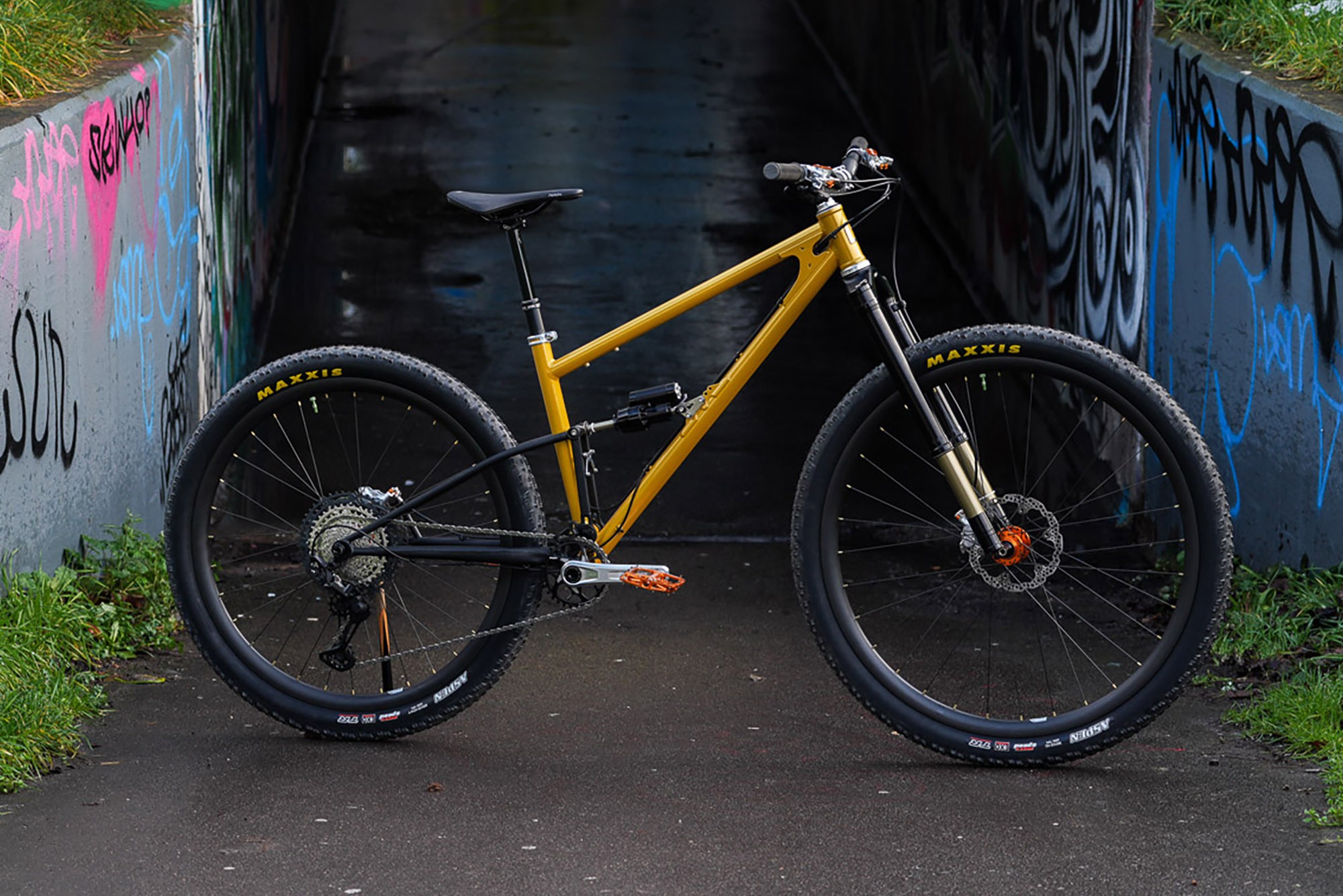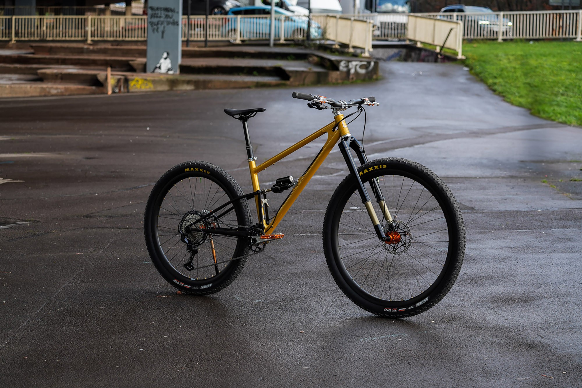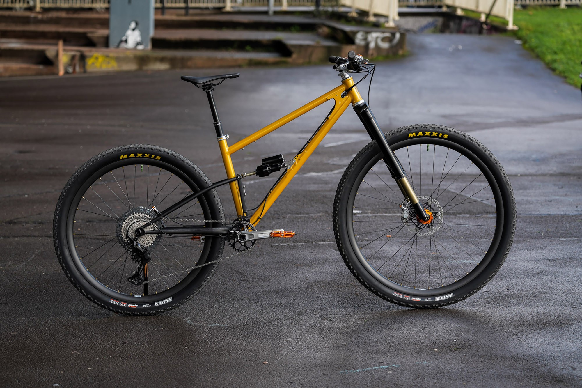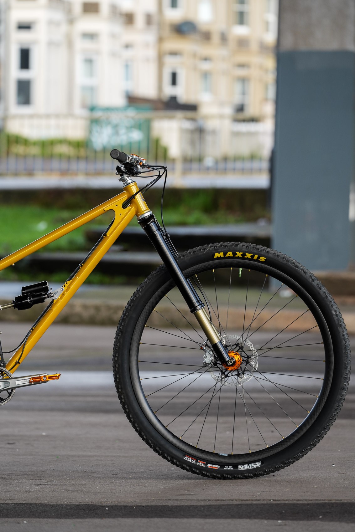 Как вы понимаете — часть запчастей может быть трудно найти, но если вы хотите купить только раму — вопросов нет, Starling с удовольствием её вам продадут за 3 300$. Также дополнить фреймсет можно вилкой Intend Samurai (+ 2 090$), амортом Intend Hover (+ 1 160$), виллсетом 32/29" ручной сборки от RyanBuildsWheels на втулках Hope Pro5 и карбоновых ободах Nextie 30 (+ 2 025$) и конечно 32-дюймовой покрышкой Maxxis Aspen (цена уточняется). Ходят слухи, что Maxxis собирается выпустить более злую 32" покру, что сделает байк более пригодным для серьёзного трейлового катания. Рама доступна в желтом и сером цветах.