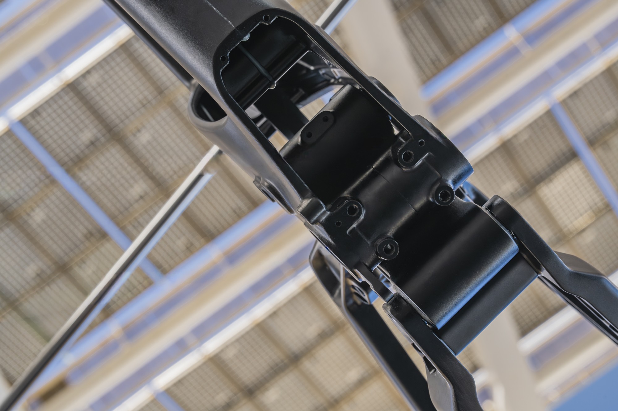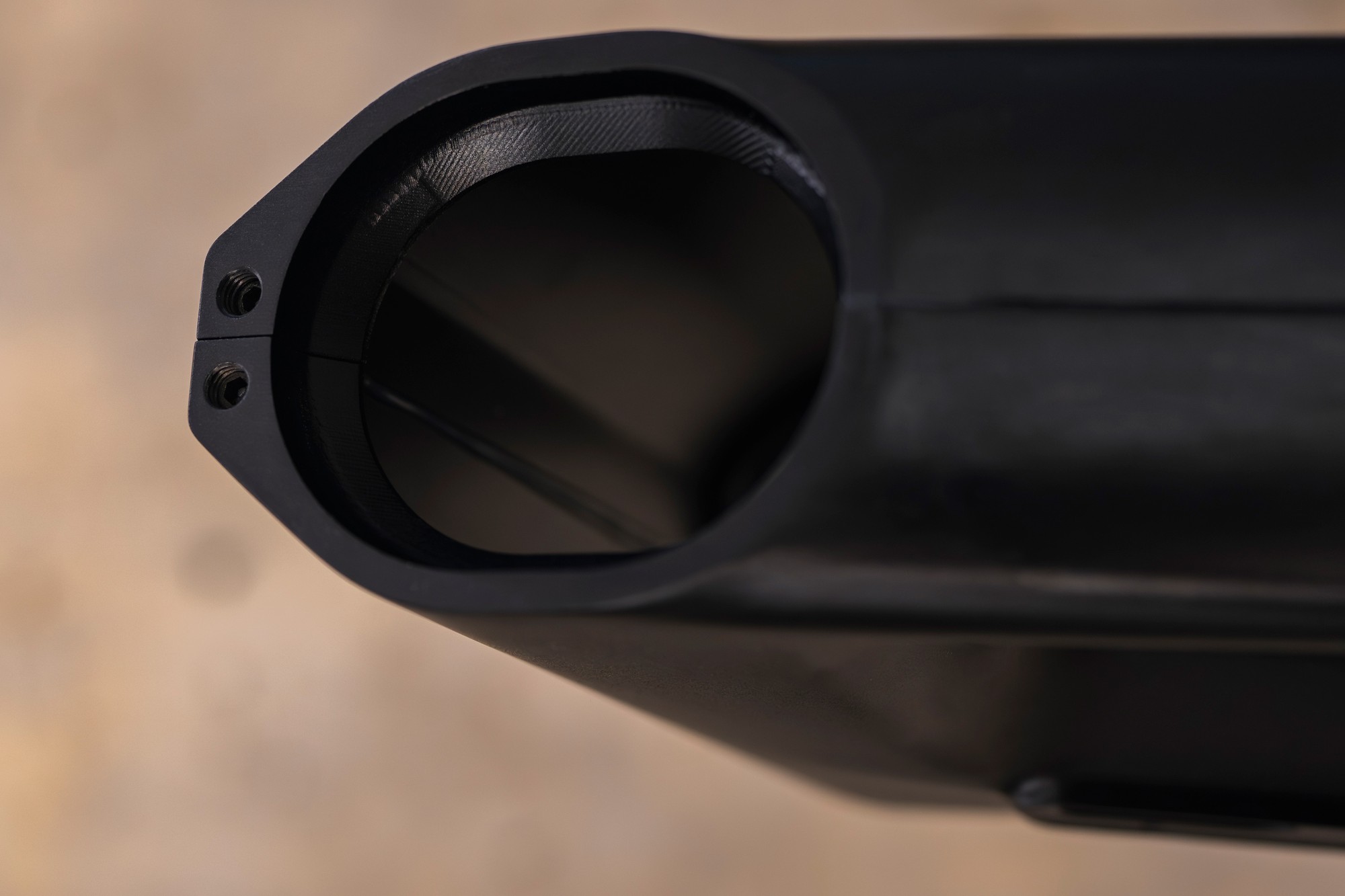 Сменными дропаутами можно отрегулировать длину перьев. В среднем положении они совсем «скромные» — 465мм, и здесь также можно изменить её на ±5мм. Сообщается, что команда сейчас планирует потестировать раму с более короткими перьями. Как можно понять по надписи на дропауте — опциональна установка не только 27.5" колеса сзади, но и 29". Крепление переключателя под UDH.
