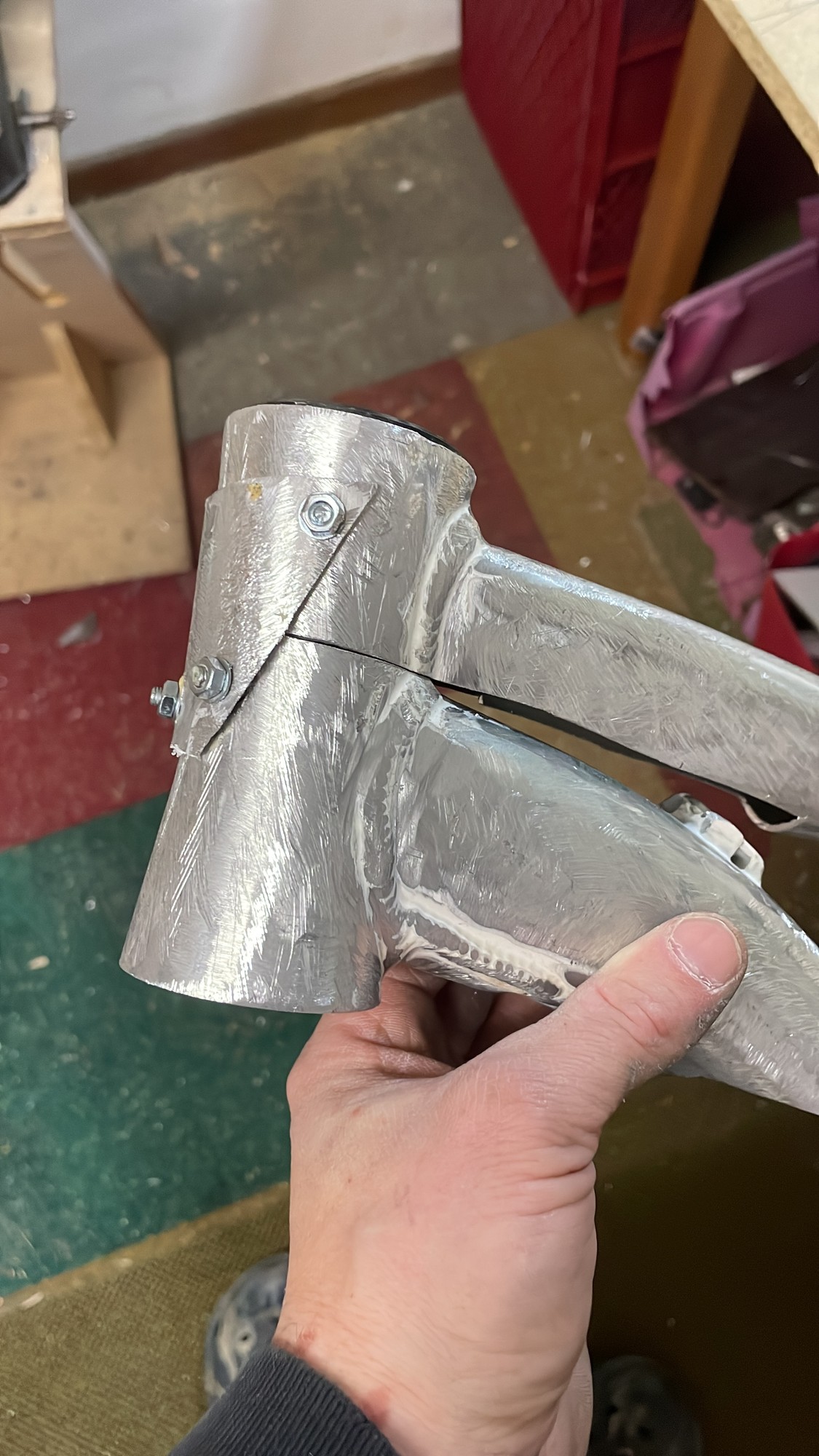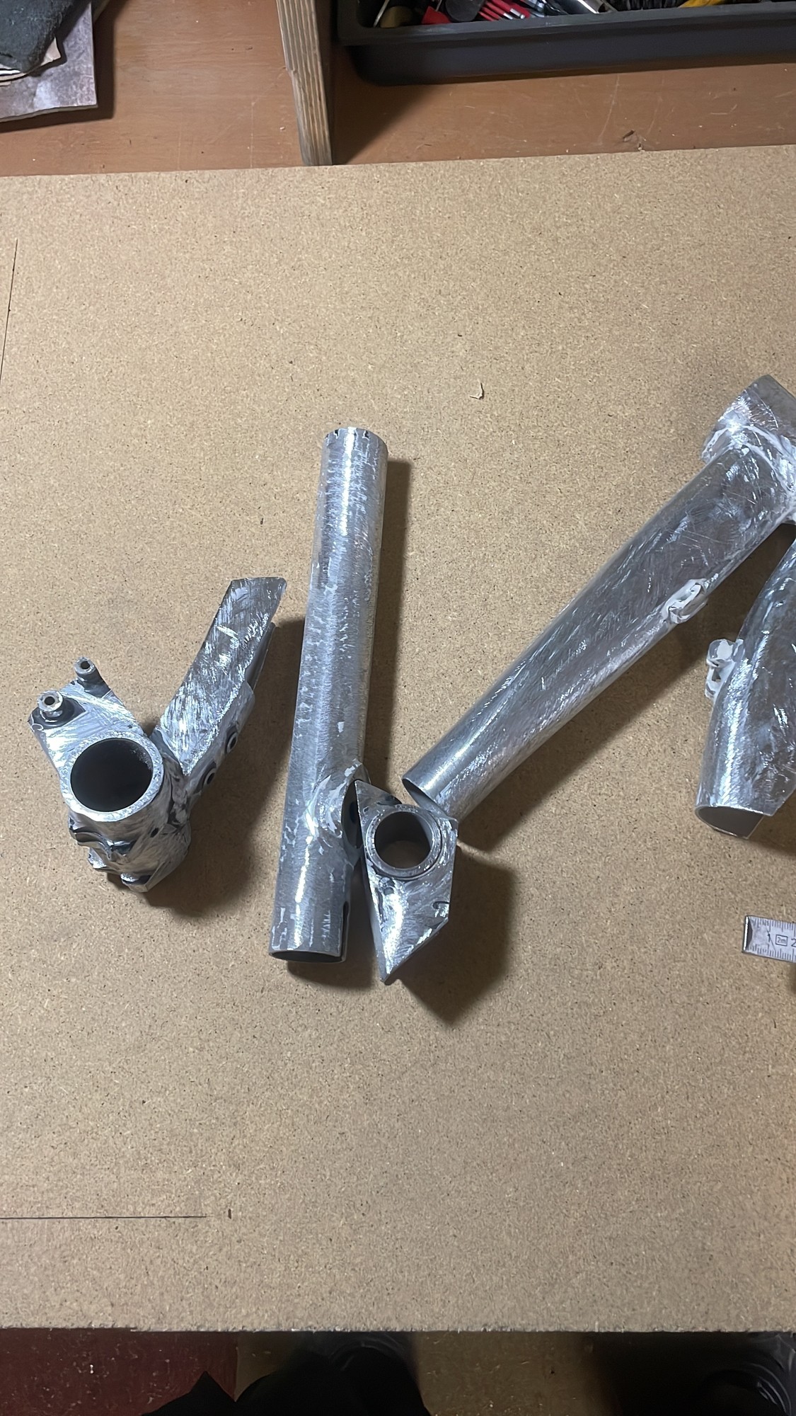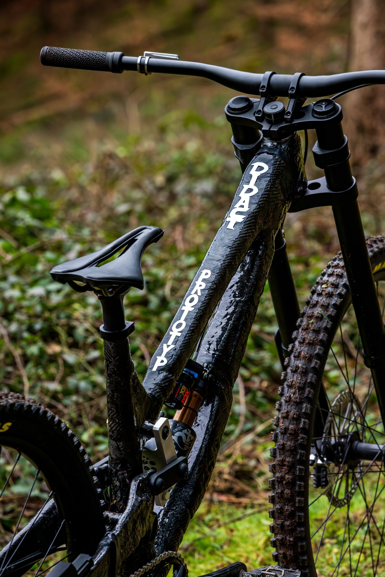 В процессе создания я использовал примерно тот же подход, что и у Atherton Bikes и других. Я отрезал рулевую трубу, каретку и подседельную трубу из старой рамы, которая у меня валялась, и модифицировал их под свой проект. Я снял краску, отшлифовал, загрунтовал и нанес слой карбона.