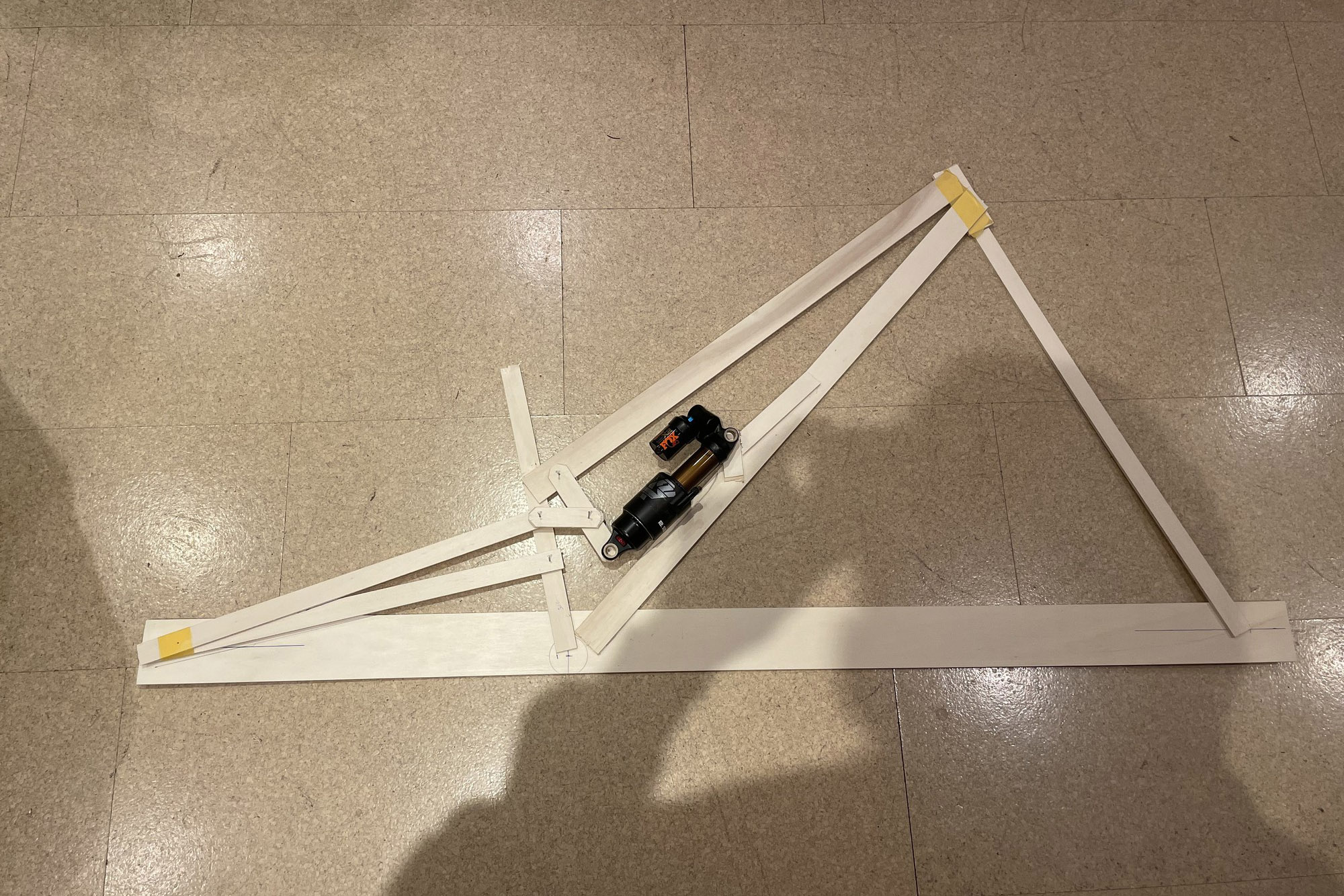 Я не использую компьютерные программы для моделирования, так что у меня нет точных данных. Могу сказать лишь то, что страгивание у подвески очень плавное. С помощью ChatGPT я посчитал рычажность подвески и это неплохо совпадает с моими ощущениями.