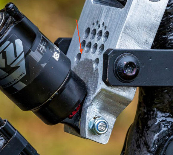 Линк, крепящийся к перьям, сделали из пластины. А линк у подседела выстрогали из бруса. Дополнительный дриллинг для облегчения присутствует.