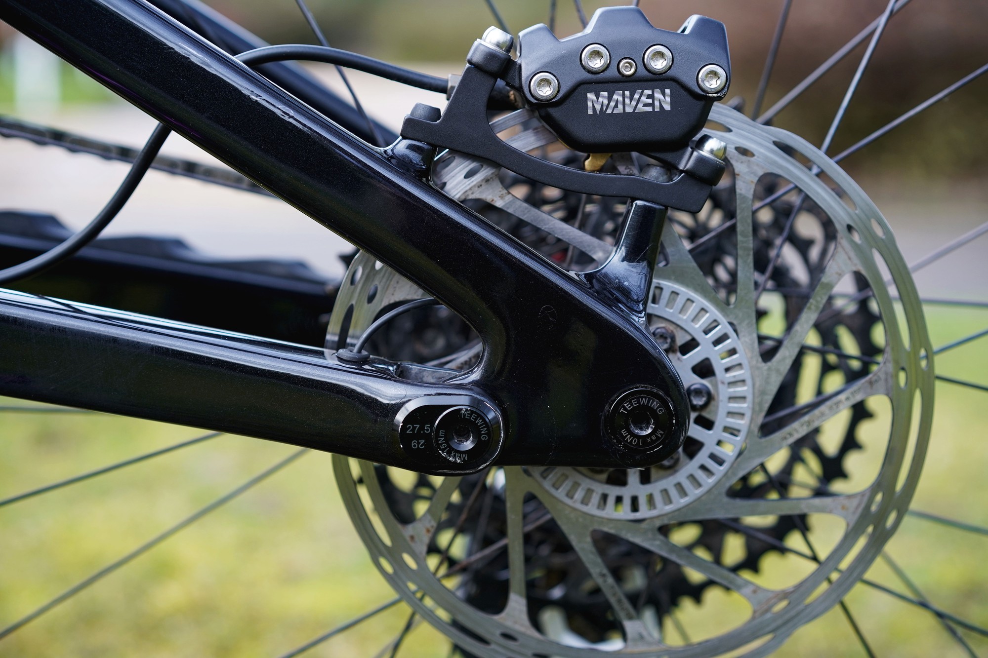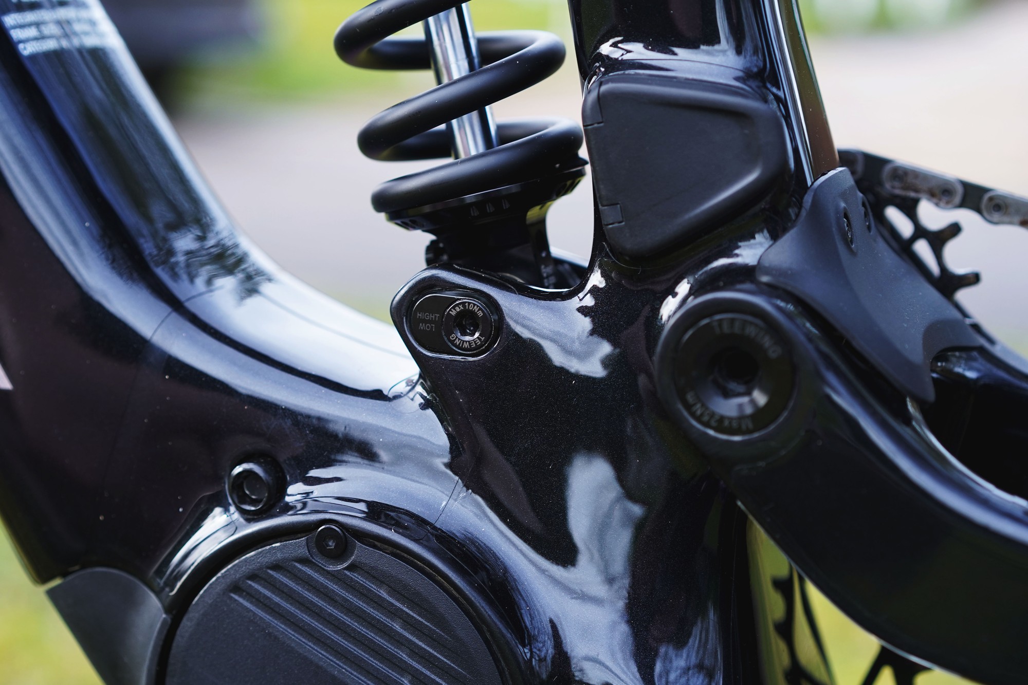 При использовании компоновки маллет у рамы будет 178мм хода подвески. Если захочется поставить 29" колёса вкруг — ход нужно уменьшить до 170мм. Хотя по секрету представители бренда говорят, что 29" колёса вкруг можно использовать и на настройке со 178мм хода подвески, просто сам производитель это не рекомендует делать. Обе версии рассчитаны под вилку на 180мм хода. Главный шарнир и зарядный порт предусмотрительно прикрыты резиновыми заглушками.