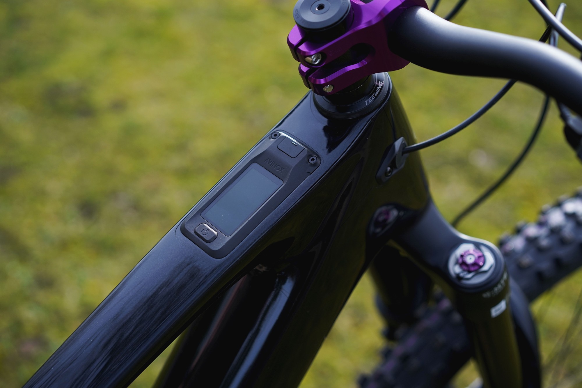 В стоке у рамы аккумулятор на 800Втч, которой должно хватить примерно на 2 000м набора. Сам аккум без быстросъёмов, но его всё же можно вытащить из рамы после демонтажа мотора. Над экранчиком теперь тоже написано Avinox, в прошлогодней версии мотора экраны были ещё с подписью DJI.