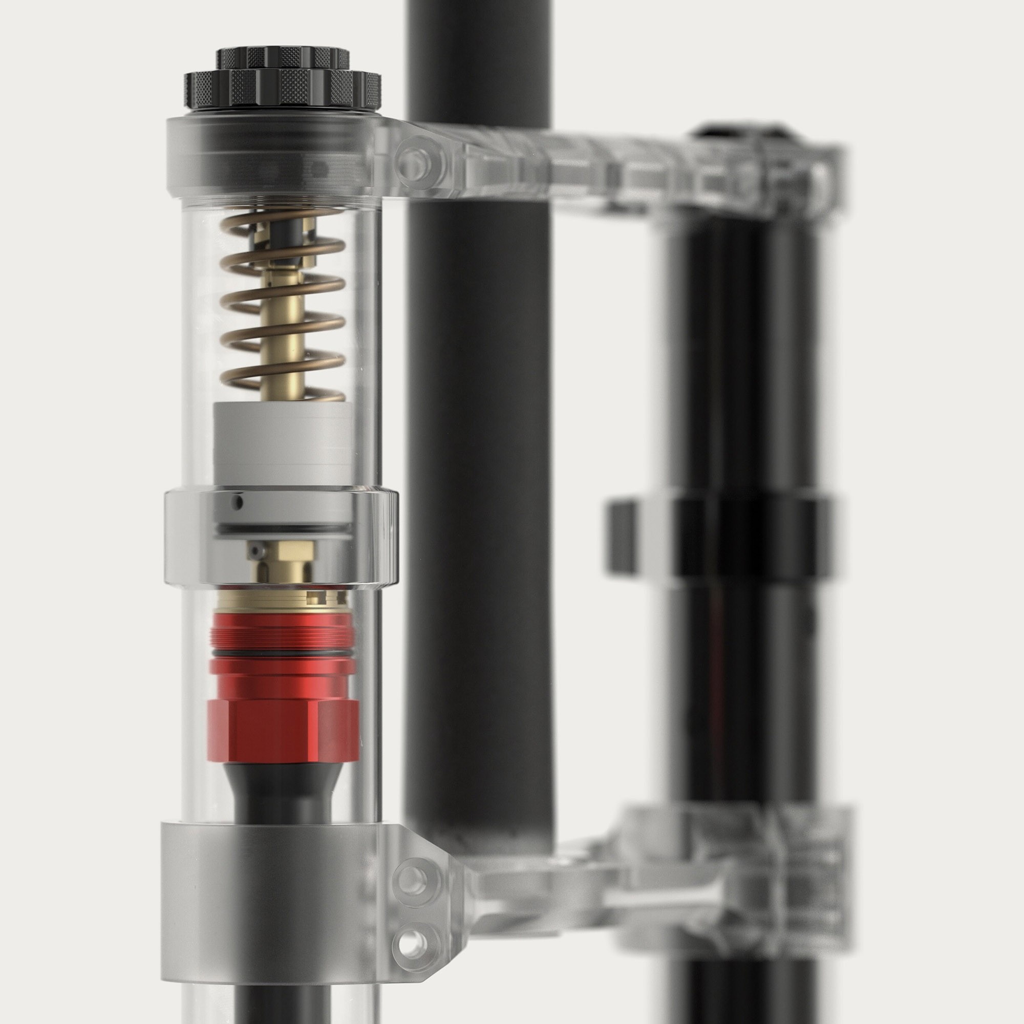 Новая версия амортизатора Vivid получила минорные изменения: у него новый расширительный бачок, новый шимстек и тюн. Как и с Boxxer — цель была минимизировать трение. Благодаря новому бачку удалось снизить базовое давление в расширительной камере IFP с 200psi до 120psi, при этом без появления кавитации. Для всяких сальников также используют консистентную смазку Maxima SGN20. Также гидравлический антипробой HBO теперь переназвали ABO — adjustable bottom out. Смысл настройки не поменялся никак, вообще. Из крутилок ещё есть высоко- и низко-скоростная компрессии, низкоскоростной отскок, а у модели RCT2 Vivid Ultimate ещё есть флажок платформы. Ну и надписей на крутилки добавили. Крутилку отскока можно вытащить и ней покрутить ВСК или антипробой.
