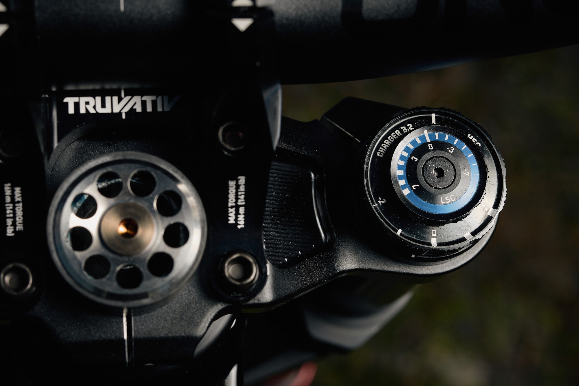 Charger 3.2 — новый демпфер. Самые внимательные заметят, что он на 0.1 лучше, чем предыдущий демпфер. В целом особых изменений тут нет, но уровни демпфирования слегка поправили с оглядкой на уменьшенное трение и снизившееся избыточное давление в штанах. Высоко- и низко-скоростная компрессии регулируются сверху с помощью пронумерованных крутилок (у предыдущего поколения были только деления без циферок), а отскок по-прежнему регулируется с помощью крутилки в нижней части правой штанины.