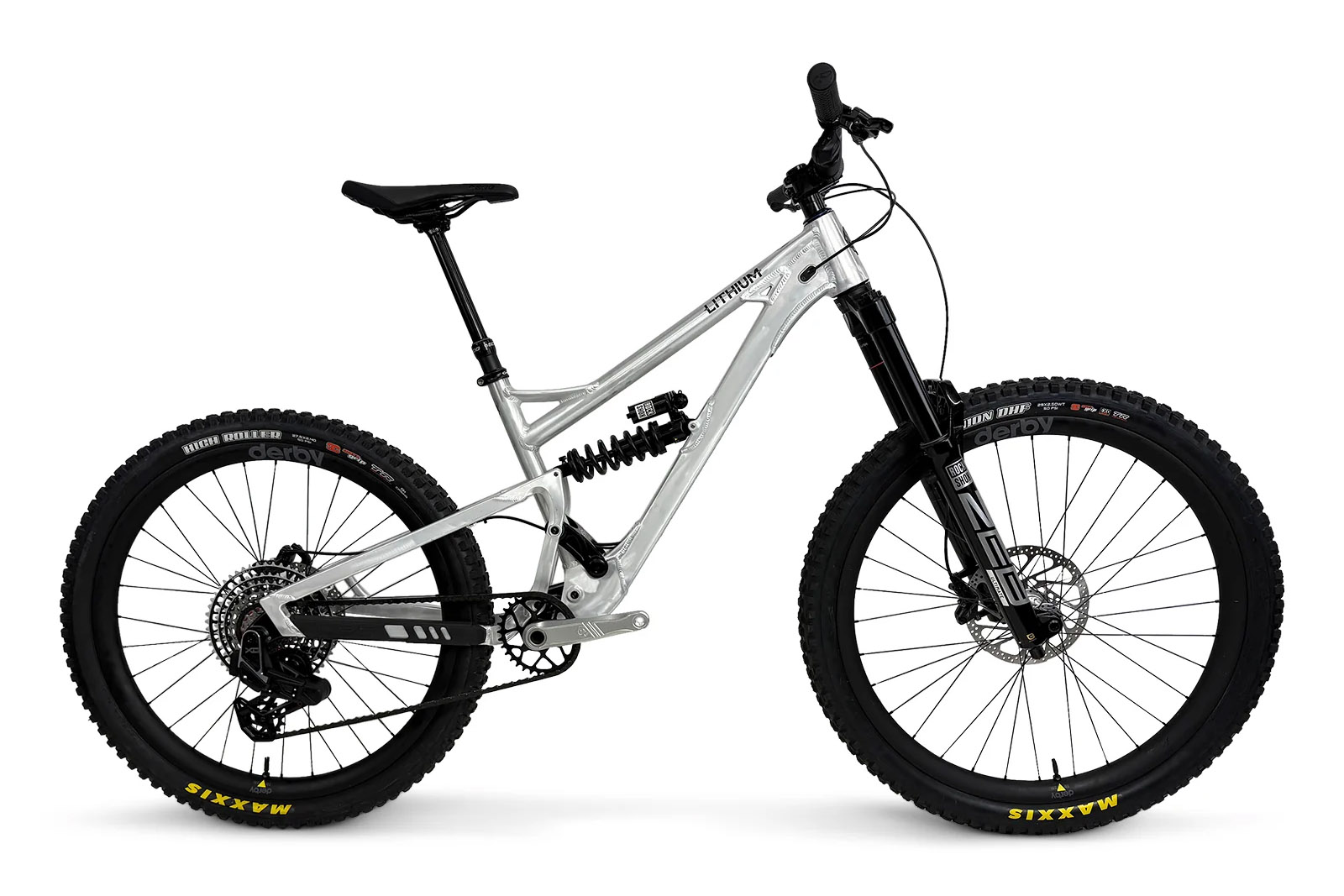 Как гласит инфа на сайте Canfield — третья версия рамы Lithium получила обновления, соответствующие духу времени. Оригинальная рама была представлена в 2020 году. Раму делают из алю 7005, отдельные узлы обрабатывают на станках с ЧПУ. Она обзавелась креплением переклюка под UDH, а также сменными дропаутами, которые теперь могут превратить байк из маллета в найнер и наоборот. Геометрия намеренно оставлена без особых изменений, 165мм хода подвески обеспечивает аморт, размерностью 230*65мм. Рекомендуемая вилка на 160-180мм хода. В шарнирах используются подшипники 6902 Max. Рулевая ZS44/56, резьбовая каретка BSA 73, дропауты 148*12мм Boost. Есть съёмное крепление ISCG 05, тормоз PM180, подседел 30.9. Вес рамы примерно 3.49кг.