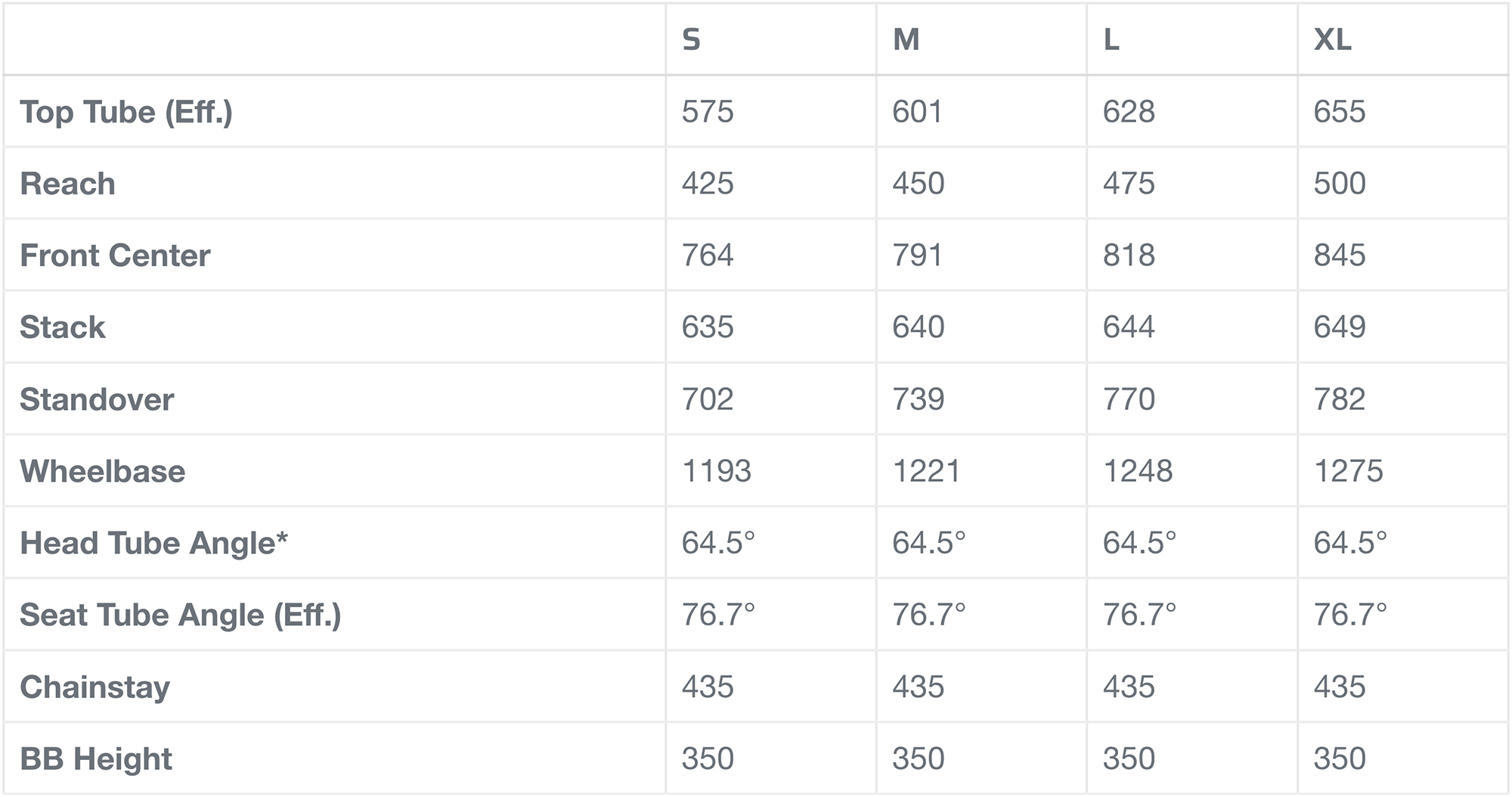 Угол рулевой 64.5°, эффективный угол подседела 76.7°. В версии под 29" колёса перья можно регулировать от 435 до 443мм с шагом по 4мм. У 27.5" версии от 427 до 435мм. Максимальная глубина установки подседельного штыря: 250 (S), 265 (M), 305 (L) и 340мм (XL).