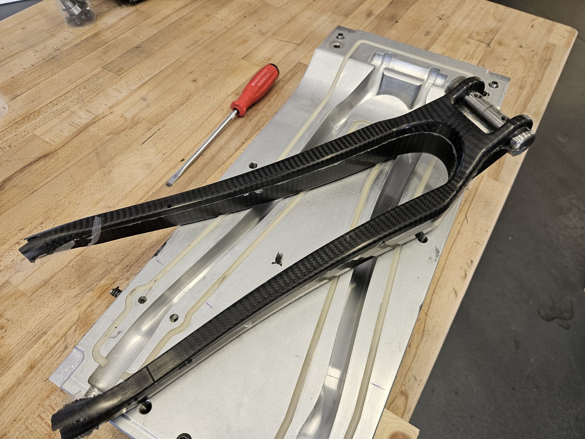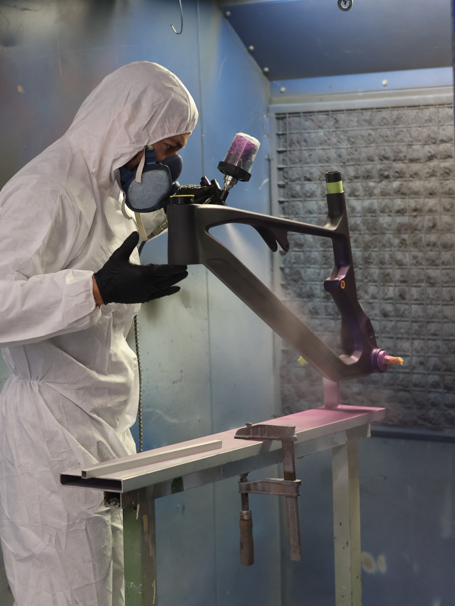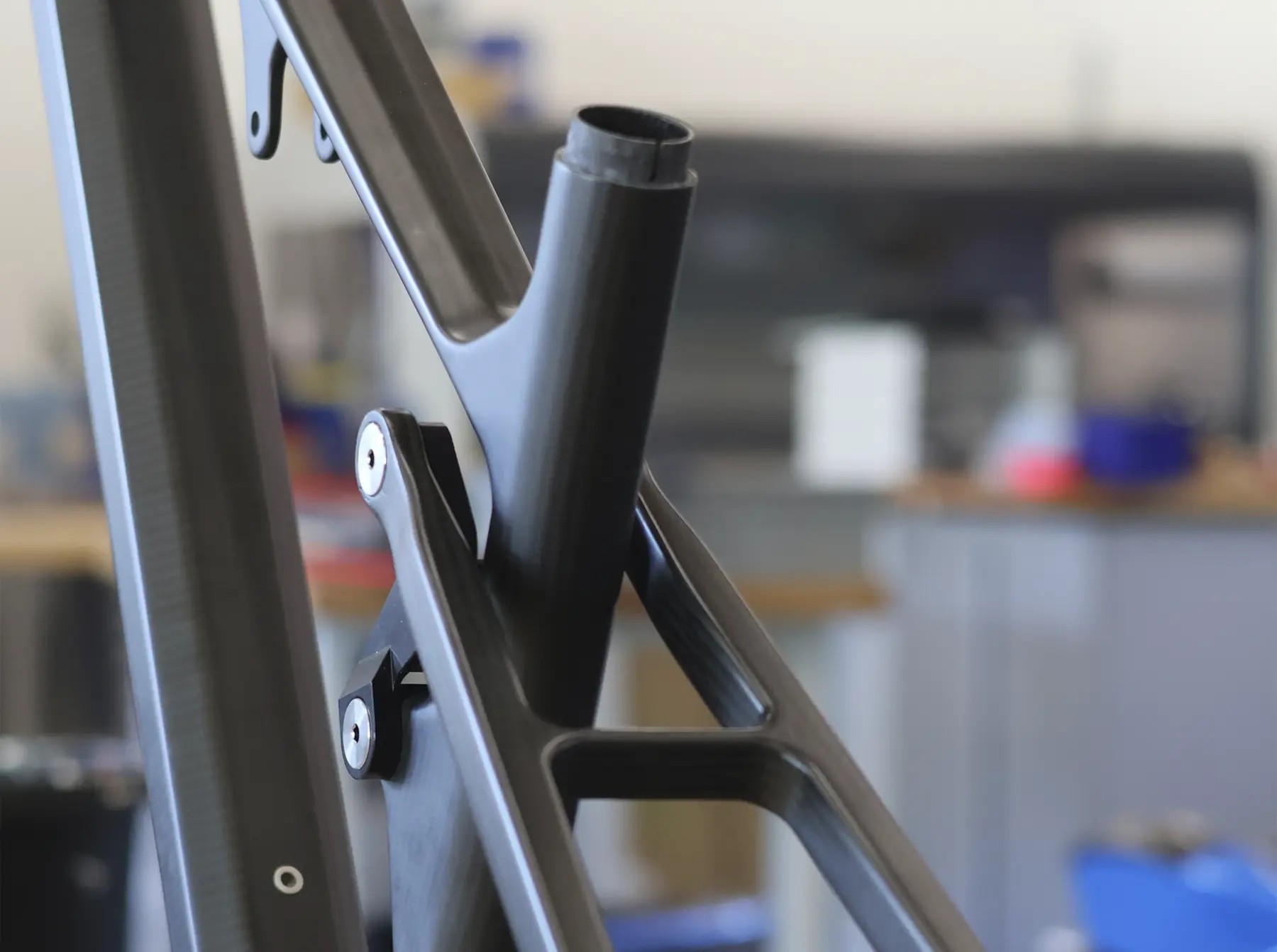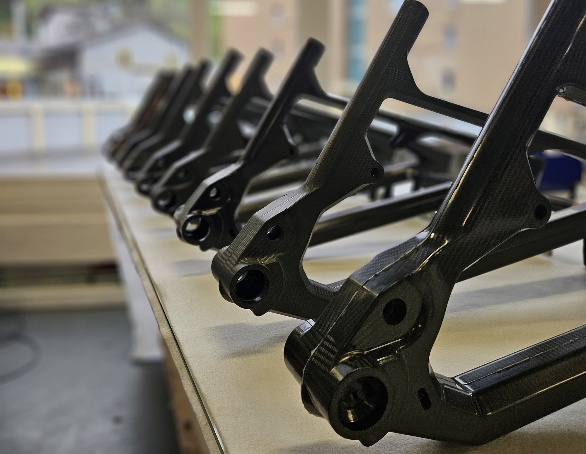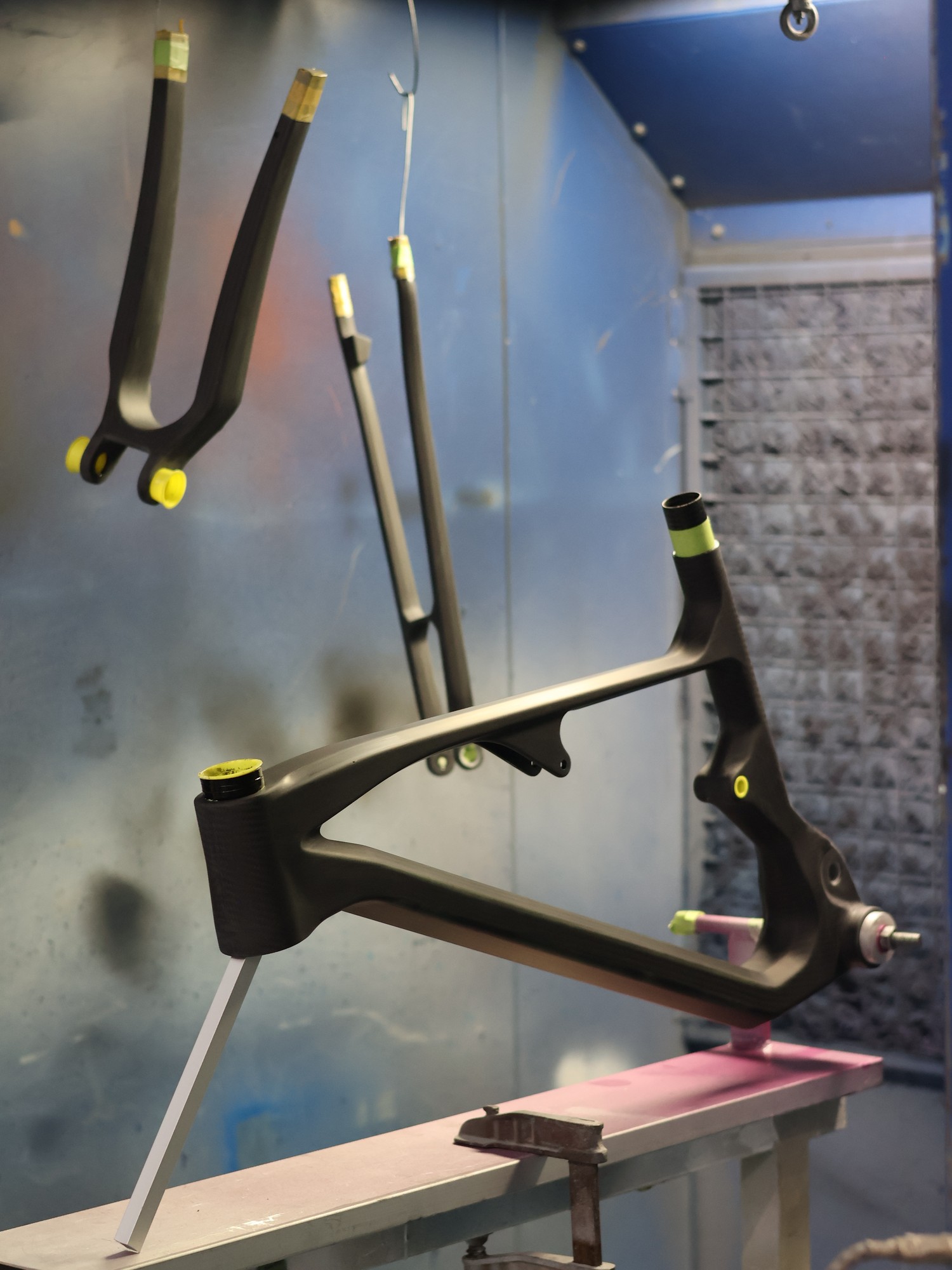 На выходе получается рама с весом 2.2кг, что не так уж и мало для кк-рамы. Но Роман говорит, что по жесткости она соответствует 3.8кг раме для эндуро. На вопрос о способе укладки волокон и о том, как ему удается создать такую жесткую раму из столь малого количества материала, Роман ответил: «Это наш секрет». Рама и все её компоненты с оснасткой полностью производятся в Швейцарии. Возможно, это единственная рама, которая полностью сделана из швейцарских компонентов.