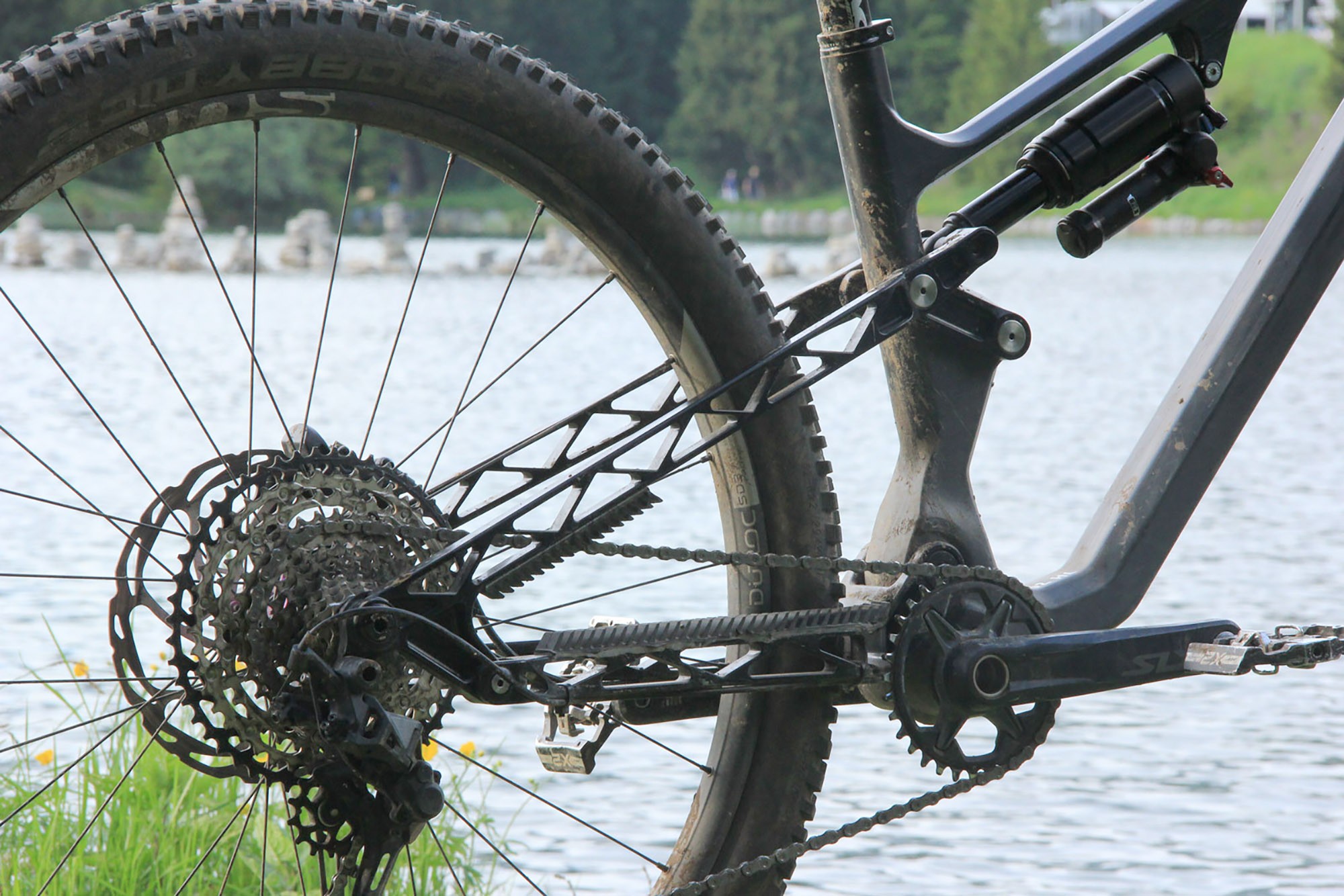 Алюминиевый линк с толщиной стенки всего 2мм. Ход подвески 120 или 130мм в зависимости от хода аморта.