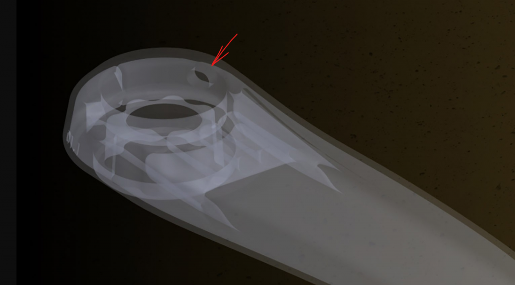 Внутри шатун полый, с дополнительными рёбрами жесткости в нужных местах.