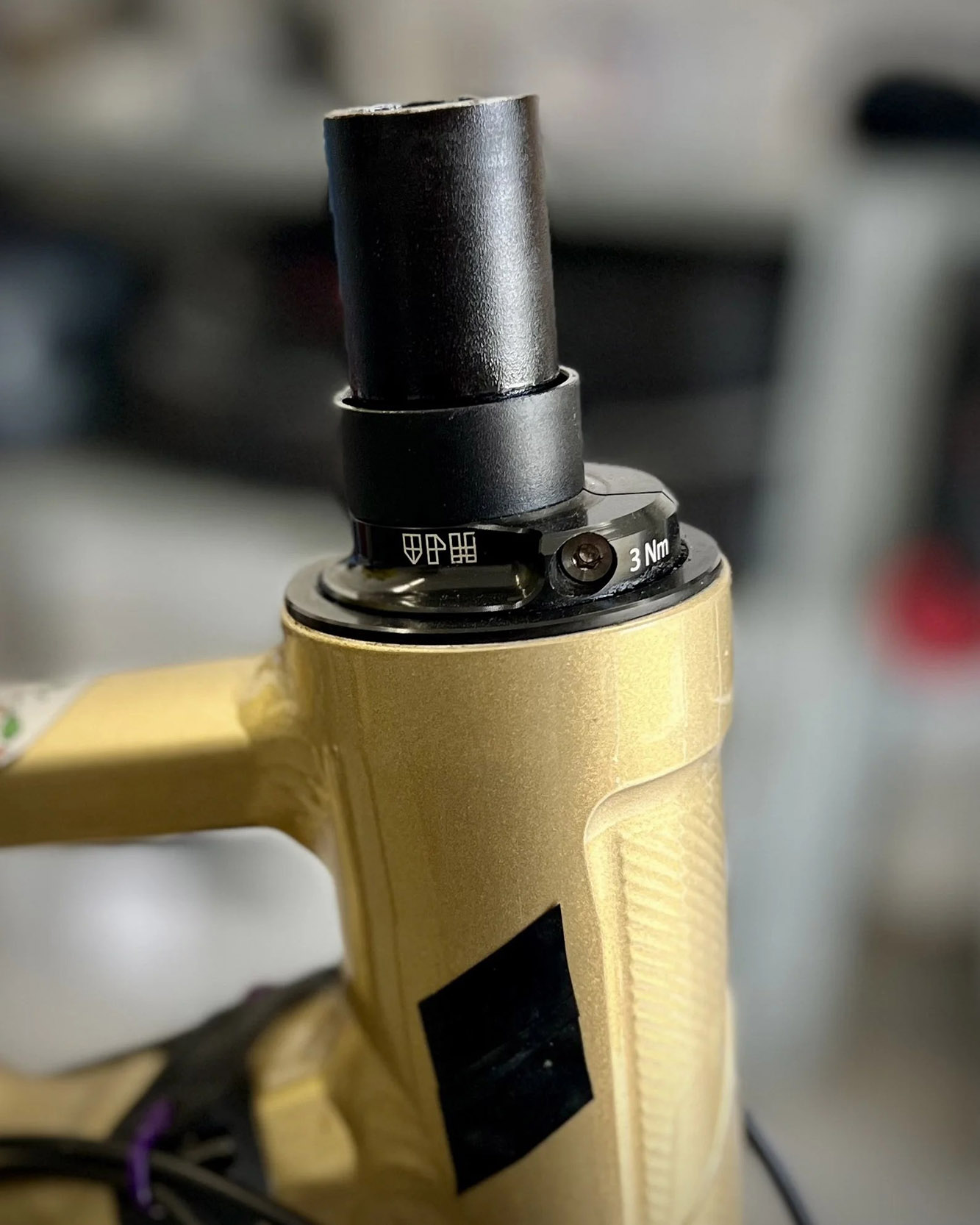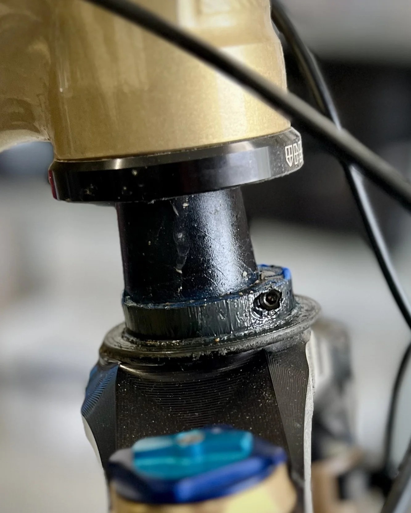 Забавный побочный эффект: при снятии выноса шток не выпадет из рулевой, ведь его фиксирует верхняя вставка, которая зажимается болтиком снаружи. Нижняя вставка служит опорой для подшипника и также зажимается болтиком.