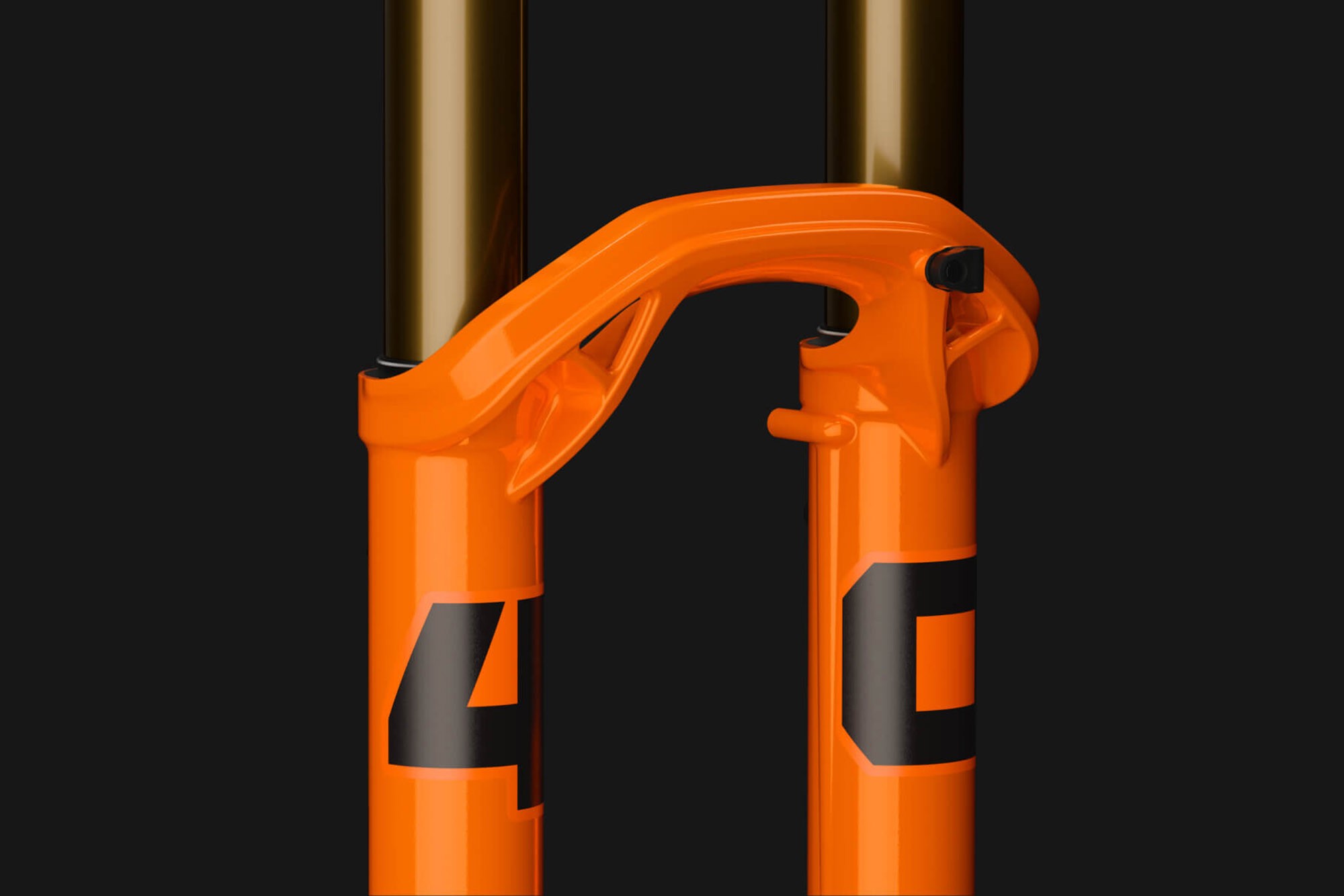 Вилка получила штаны в новом дизайне с отверстиями у гориллы, как у 32 Step Cast, 36, 36 SL и 34 SL. Говорят, их разрабатывали с помощью генеративных технологий (когда ИИшка рисует оптимальный дизайн с точки зрения жесткости и веса). Но если младшим вилкам добавляли таким образом больше торсионной жесткости, но в новой 40-ке жесткость осталась прежней. Внутри самих штанов изменили расположение каналов для стравливания давления, теперь они находятся не сзади, а с внутренней стороны у колеса. Говорят, с таким расположением башинги меньше закусывает на серьёзных нагрузках, так что вилка работает плавнее. Новые штаны достались только 29" версии вилки. У 27.5" версии штаны старого образца.