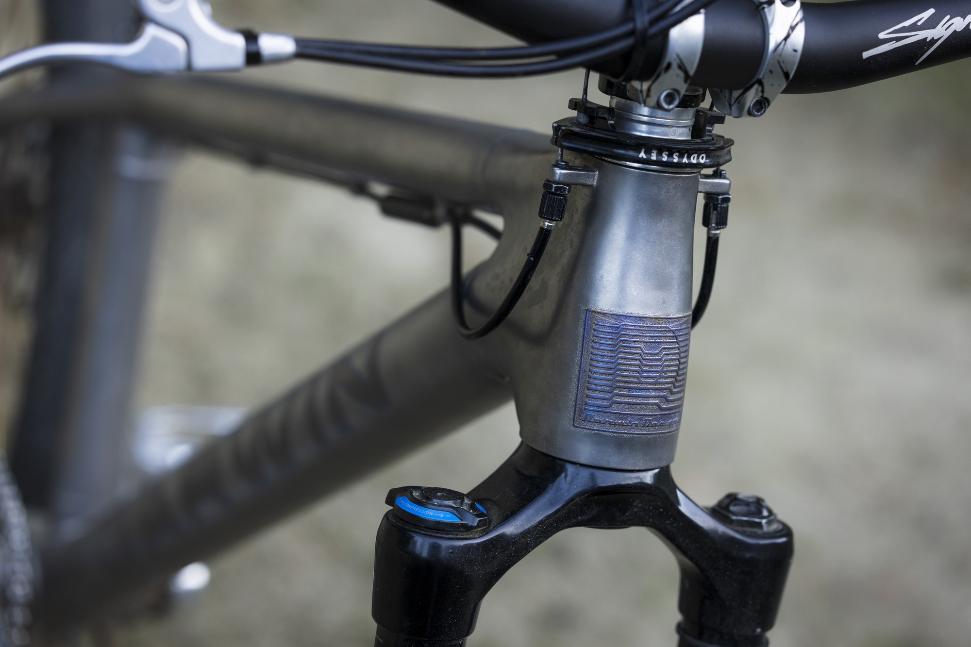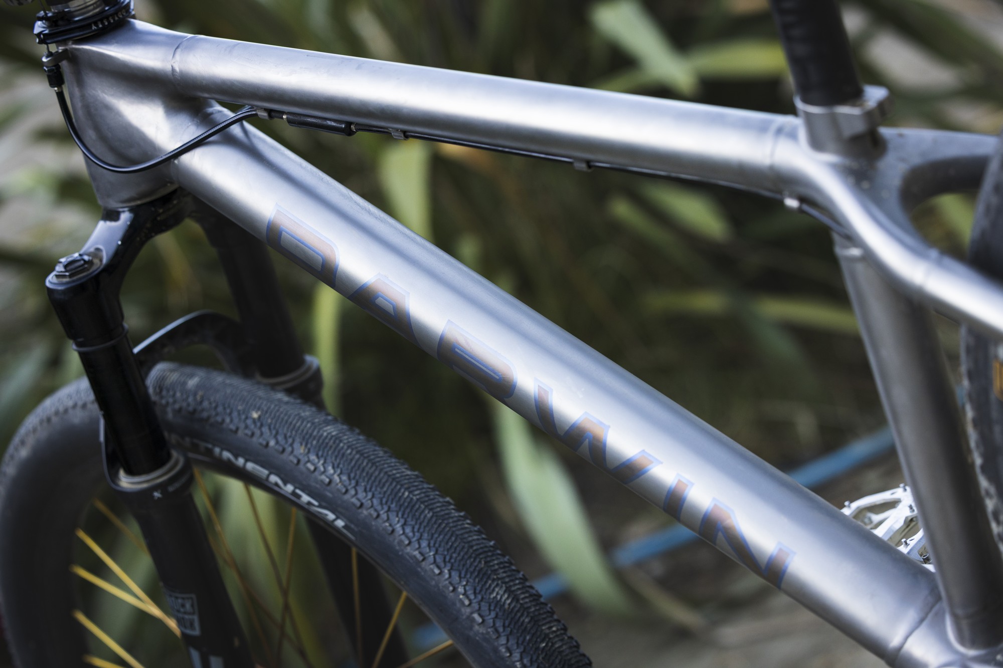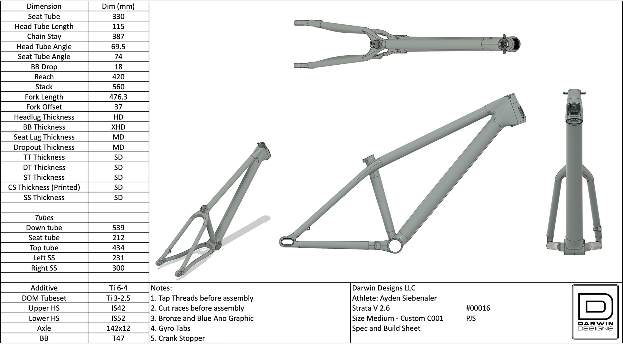 Автор проекта — Патрик Стэнли (Patrick Stanley) из Darwin Designs рассказывает, что нижнюю трубу специально для байка изготавливают под заказ. Все трубы на байке из сплава Ti3Al2.5V, а узлы печатают из сплава Ti6Al4V методом селективного лазерного спекания (SLM). Метод повсеместно используют в велоиндустрии для 3d-печати почти всего, начиная с титановых узлов для велосипедов Atherton Bikes и заканчивая всякими тормозными титановыми ручками и прочими продуктами местных кулибиных, вроде регулировки наклона седла а-ля SwitchGrade от тов. Strgv.