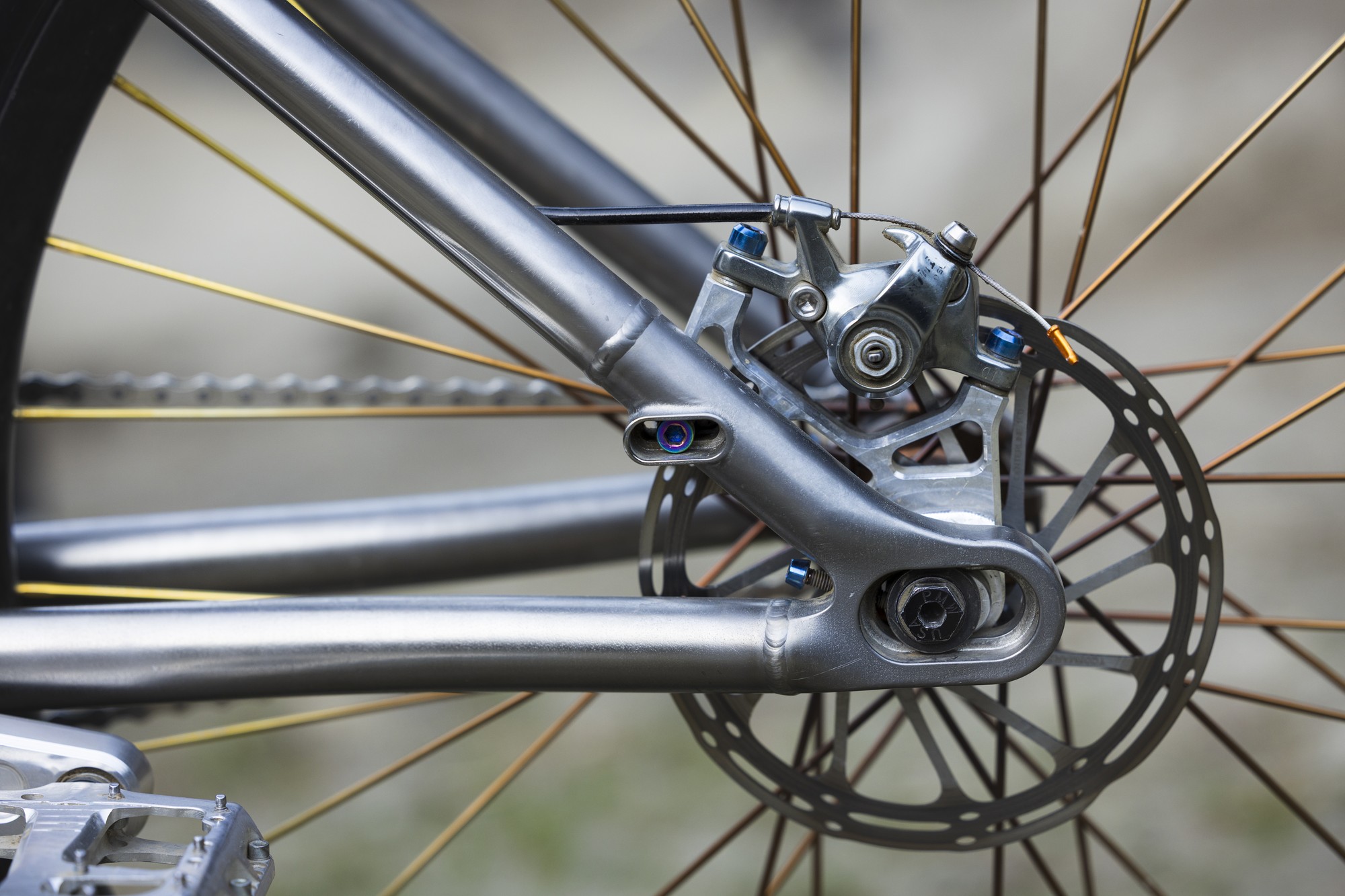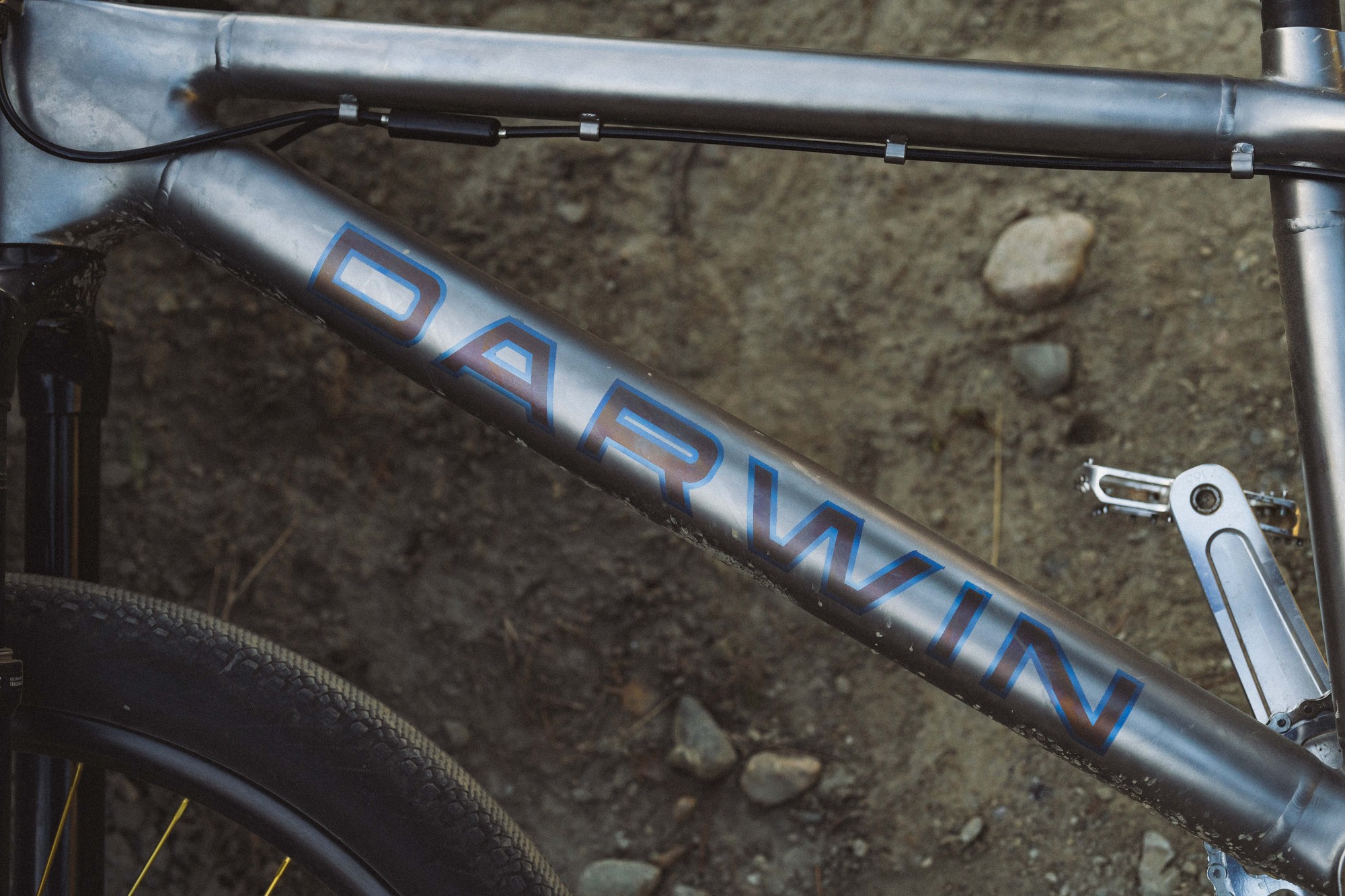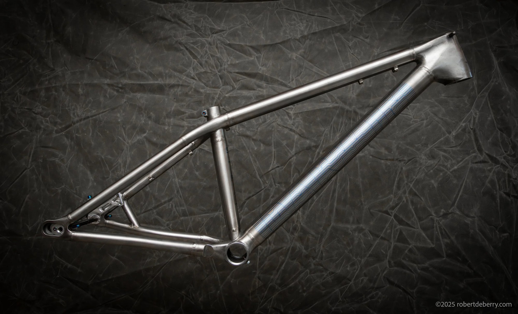 Автор проекта — Патрик Стэнли (Patrick Stanley) из Darwin Designs рассказывает, что нижнюю трубу специально для байка изготавливают под заказ. Все трубы на байке из сплава Ti3Al2.5V, а узлы печатают из сплава Ti6Al4V методом селективного лазерного спекания (SLM). Метод повсеместно используют в велоиндустрии для 3d-печати почти всего, начиная с титановых узлов для велосипедов Atherton Bikes и заканчивая всякими тормозными титановыми ручками и прочими продуктами местных кулибиных, вроде регулировки наклона седла а-ля SwitchGrade от тов. Strgv.