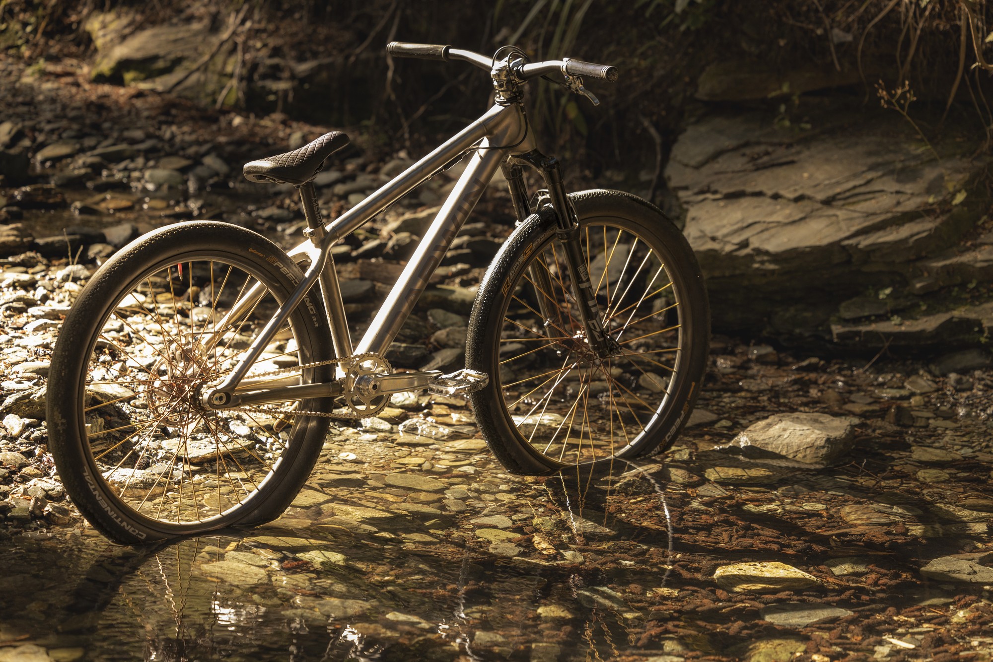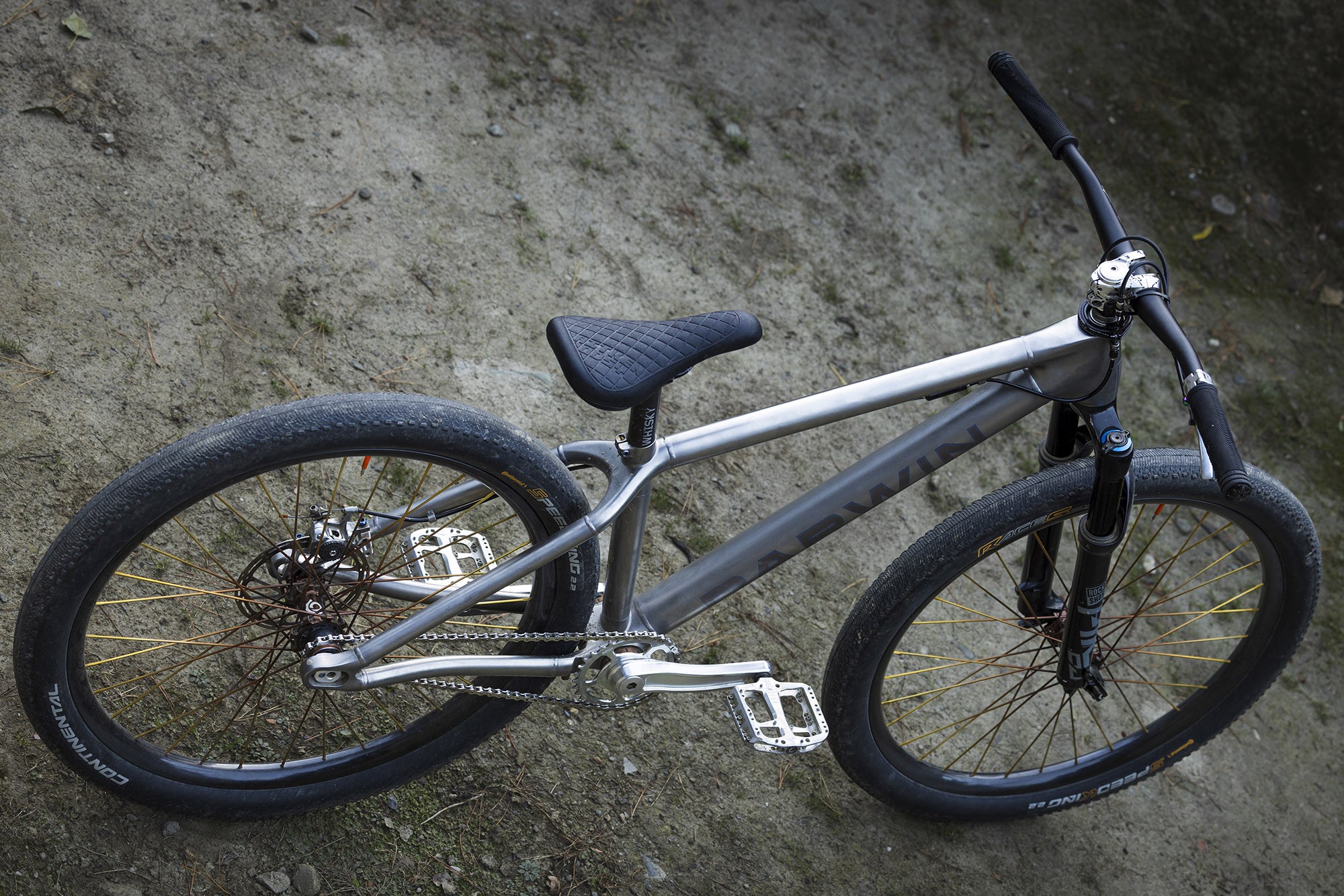 Розовый ресурс рассказывает про титановый байк Darwin Strata DJ восходящей звезды слопстайла из Канады Эйдена Сибеналера. Титановые заказные трубы, печатные титановые узлы и ценник на раму в 6 000$.
